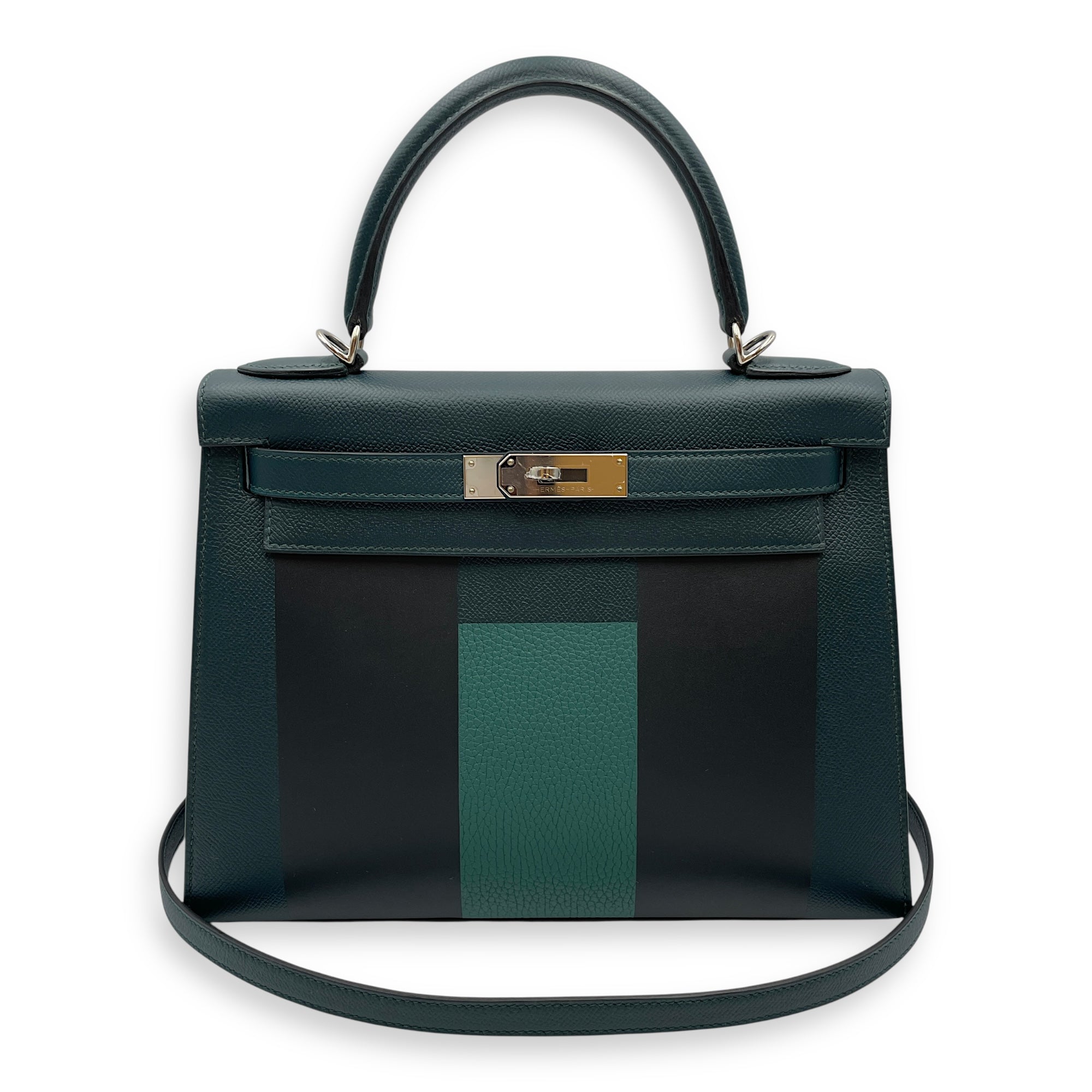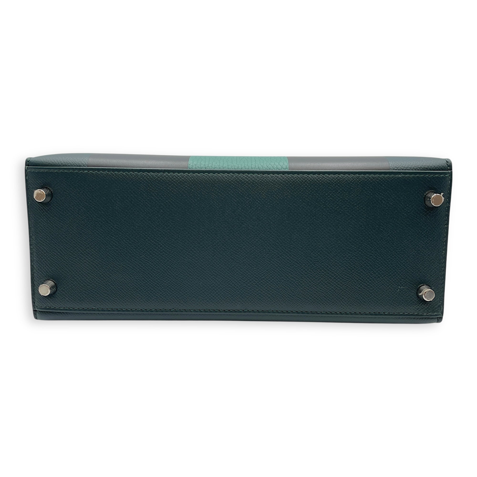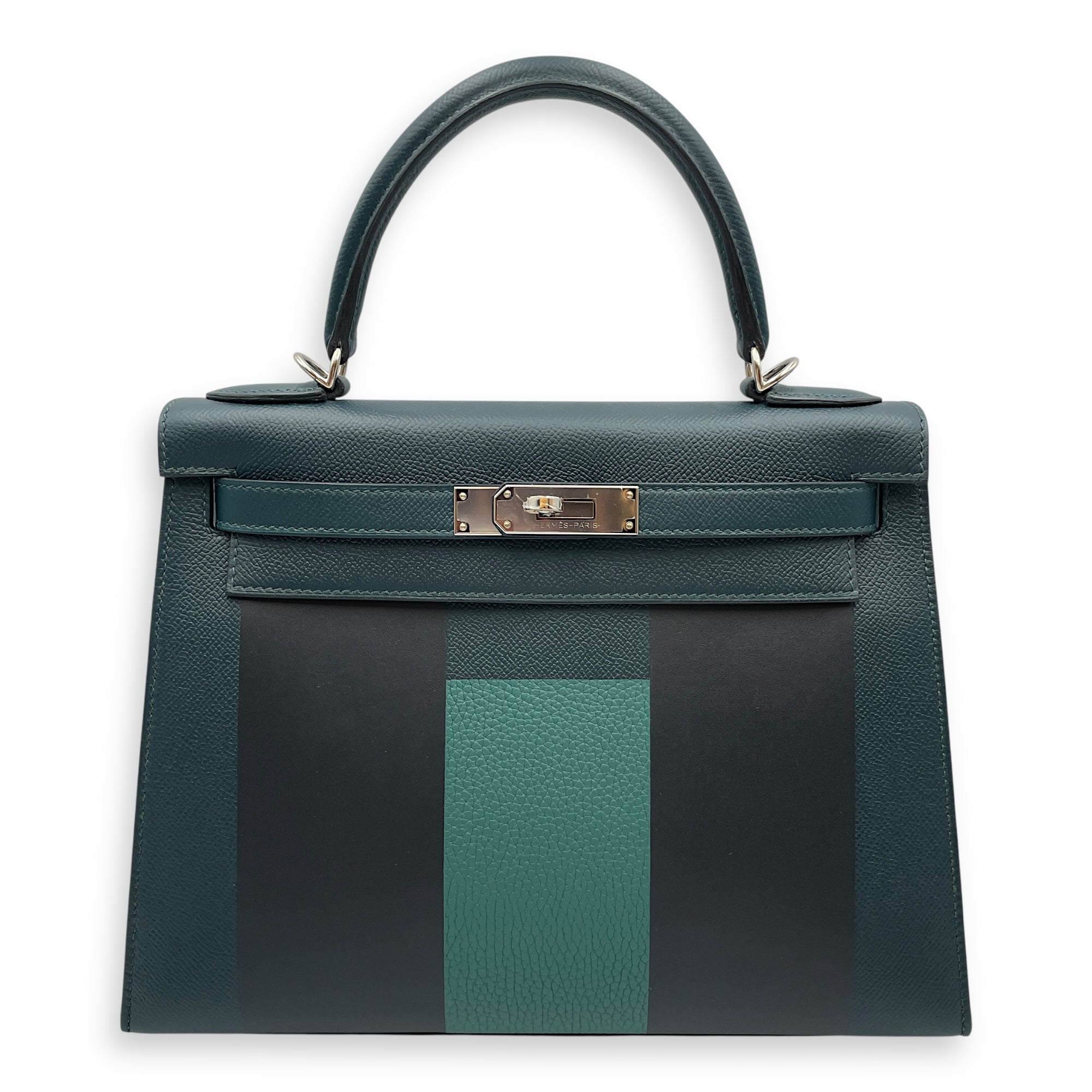 Lettre Sellier Kelly 28 Vert Cypres/Blue Obscure/Malachite in Epsom/Sombrero/Clemence, Palladium hardware