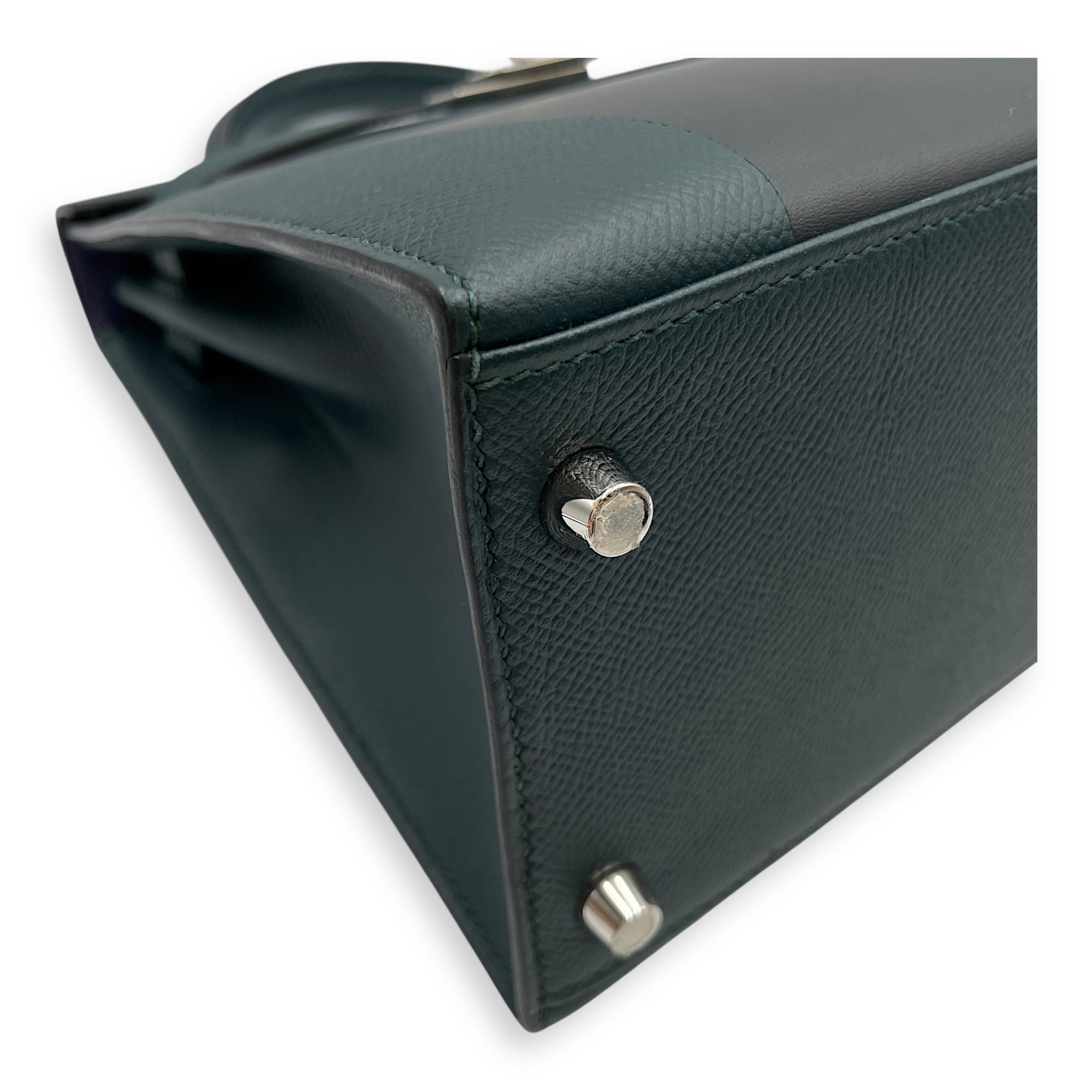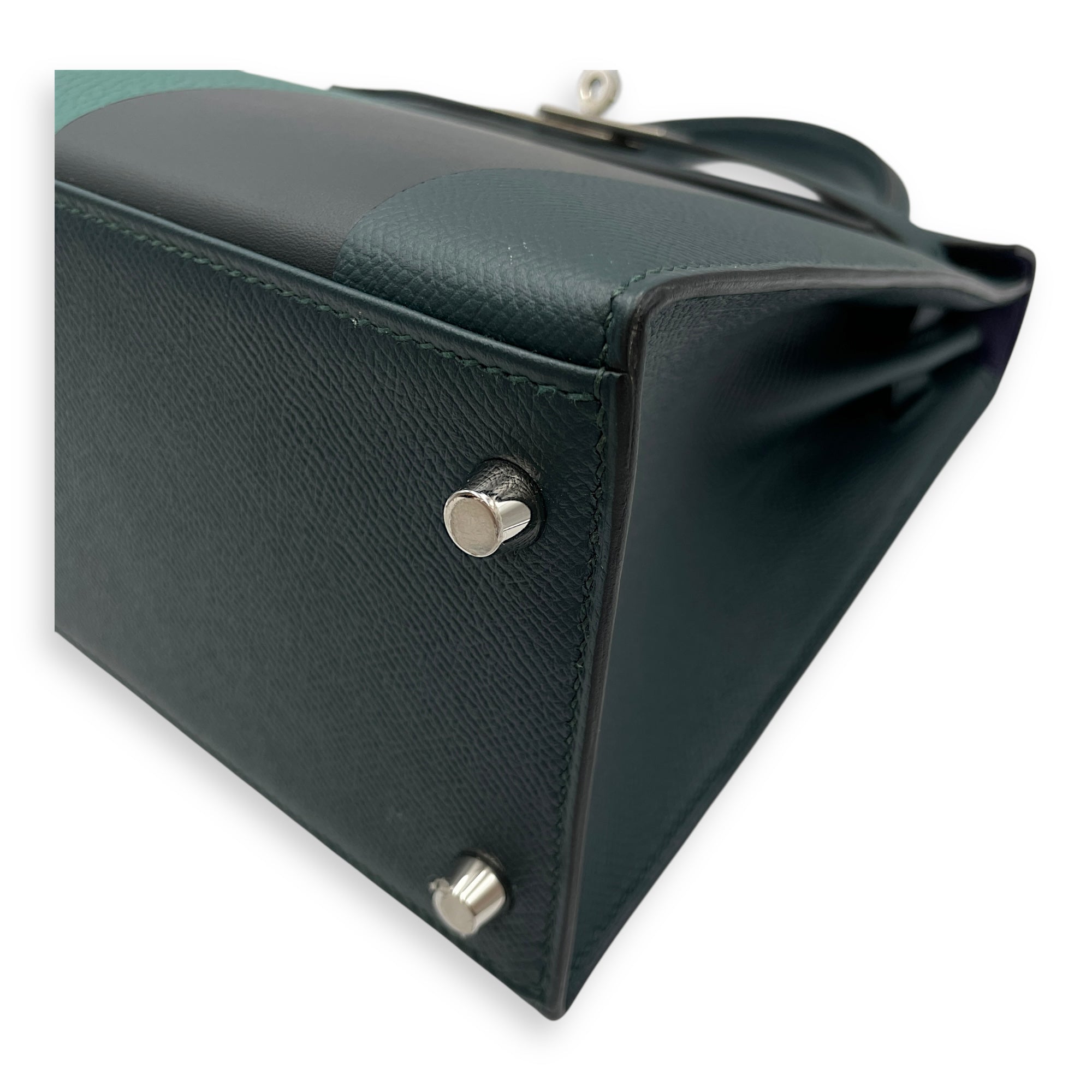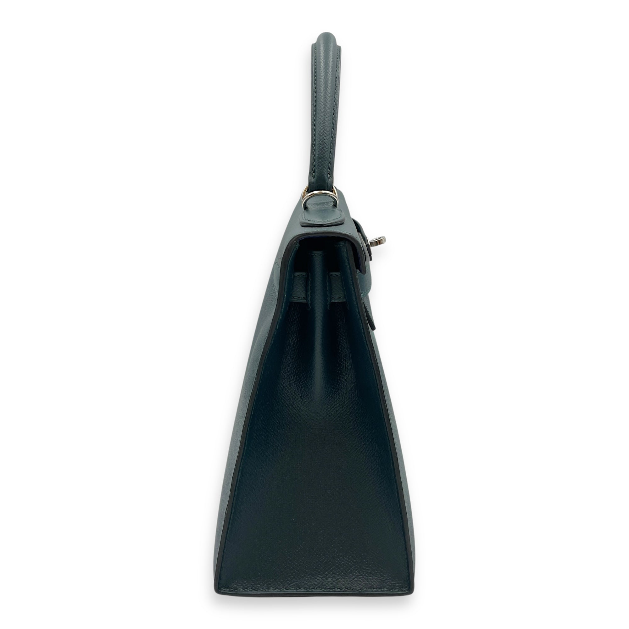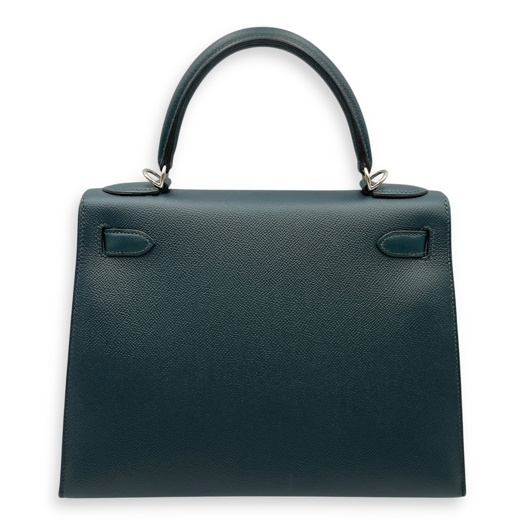 Lettre Sellier Kelly 28 Vert Cypres/Blue Obscure/Malachite in Epsom/Sombrero/Clemence, Palladium hardware