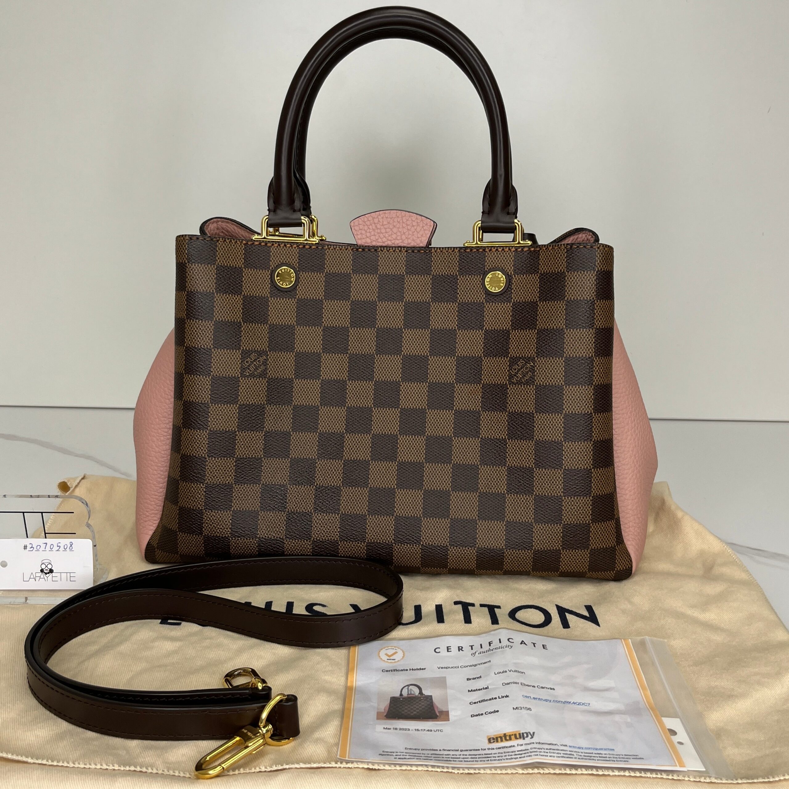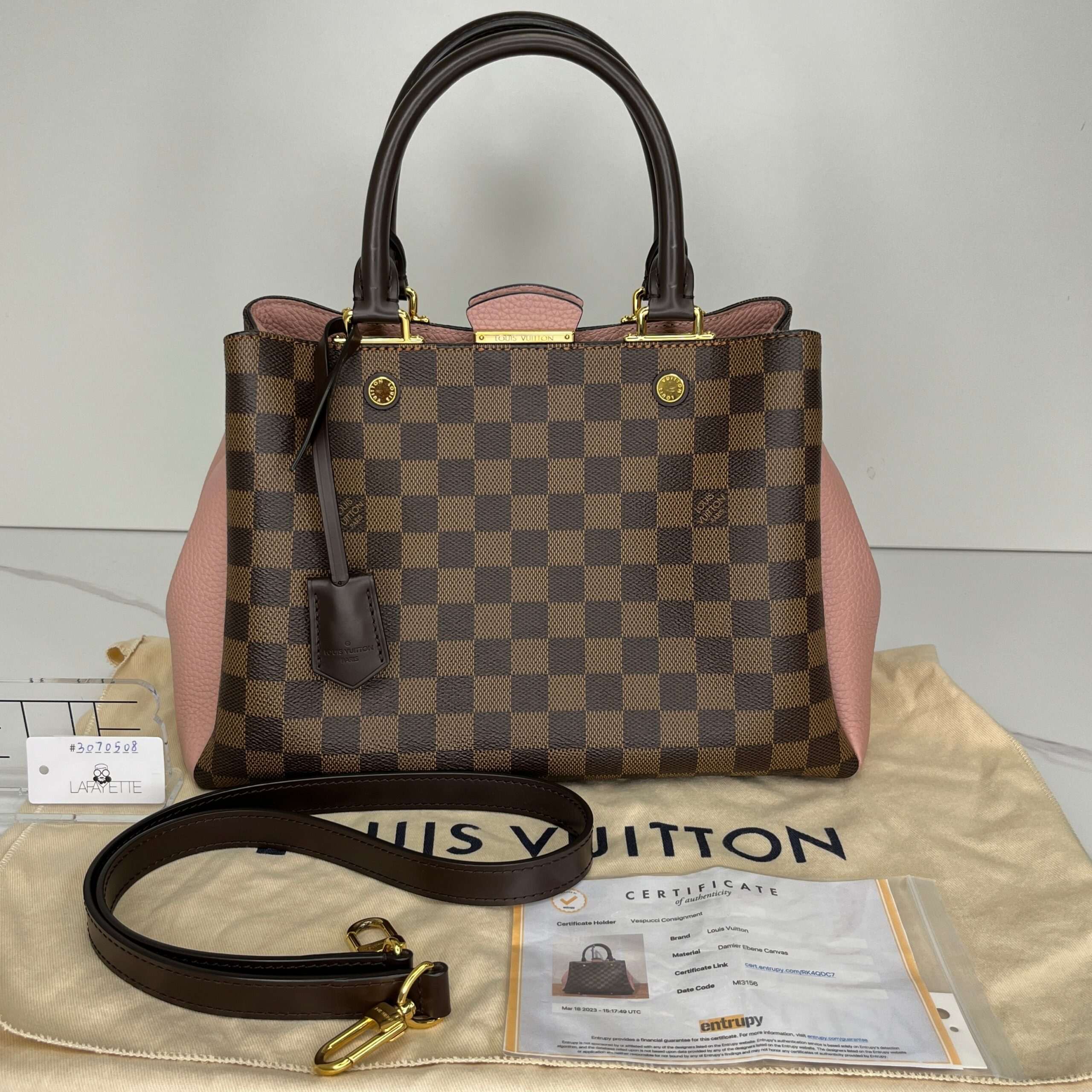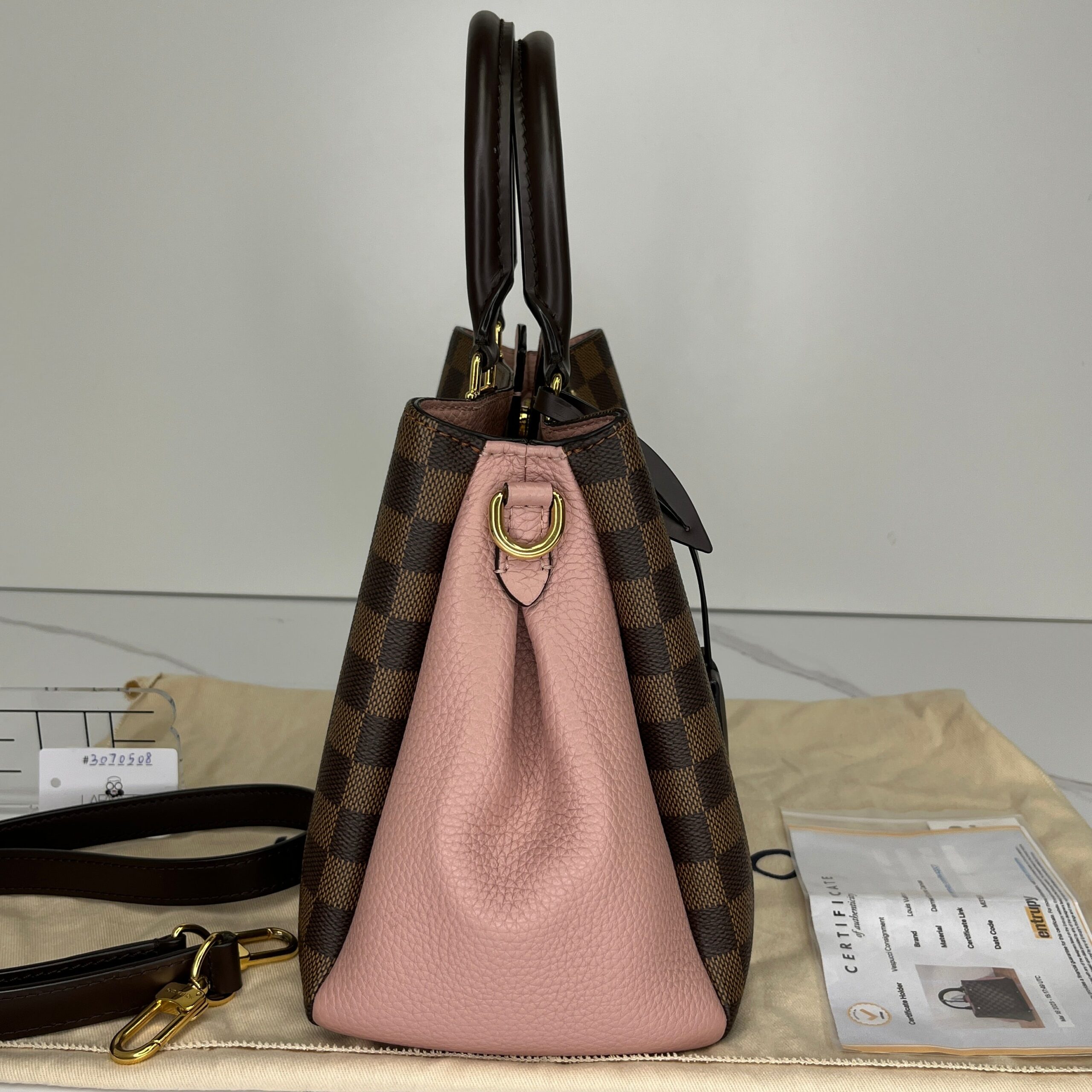 Material/Leather Type: Damier Ebene Coated CanvasHardware: Gold ToneColor: Brown/PinkYear: 2016Condition: 9.5/10 Comes With: Strap , Dustbag , Certificate