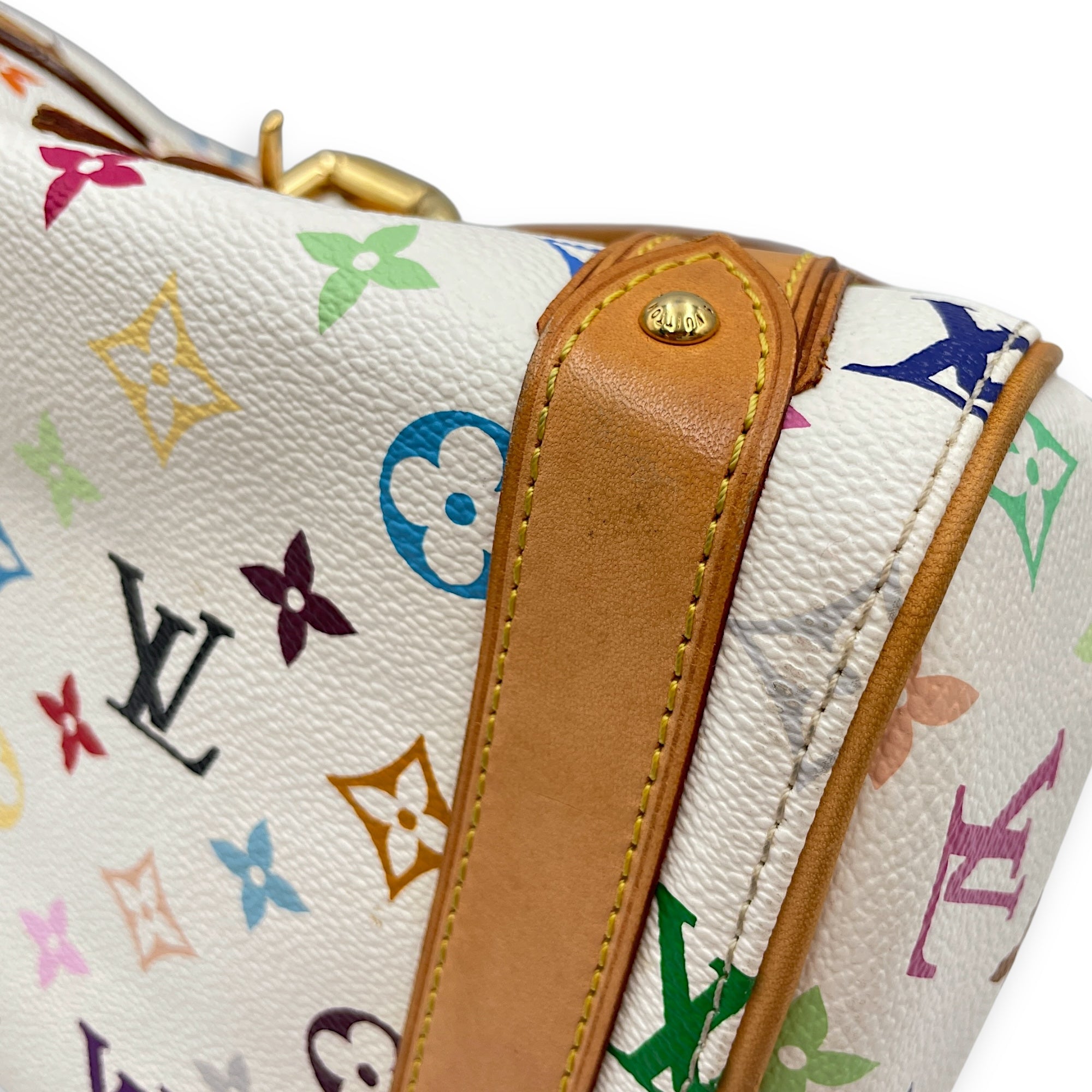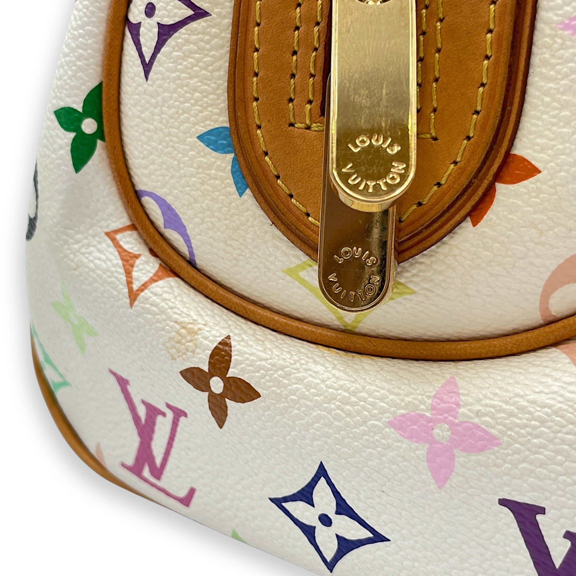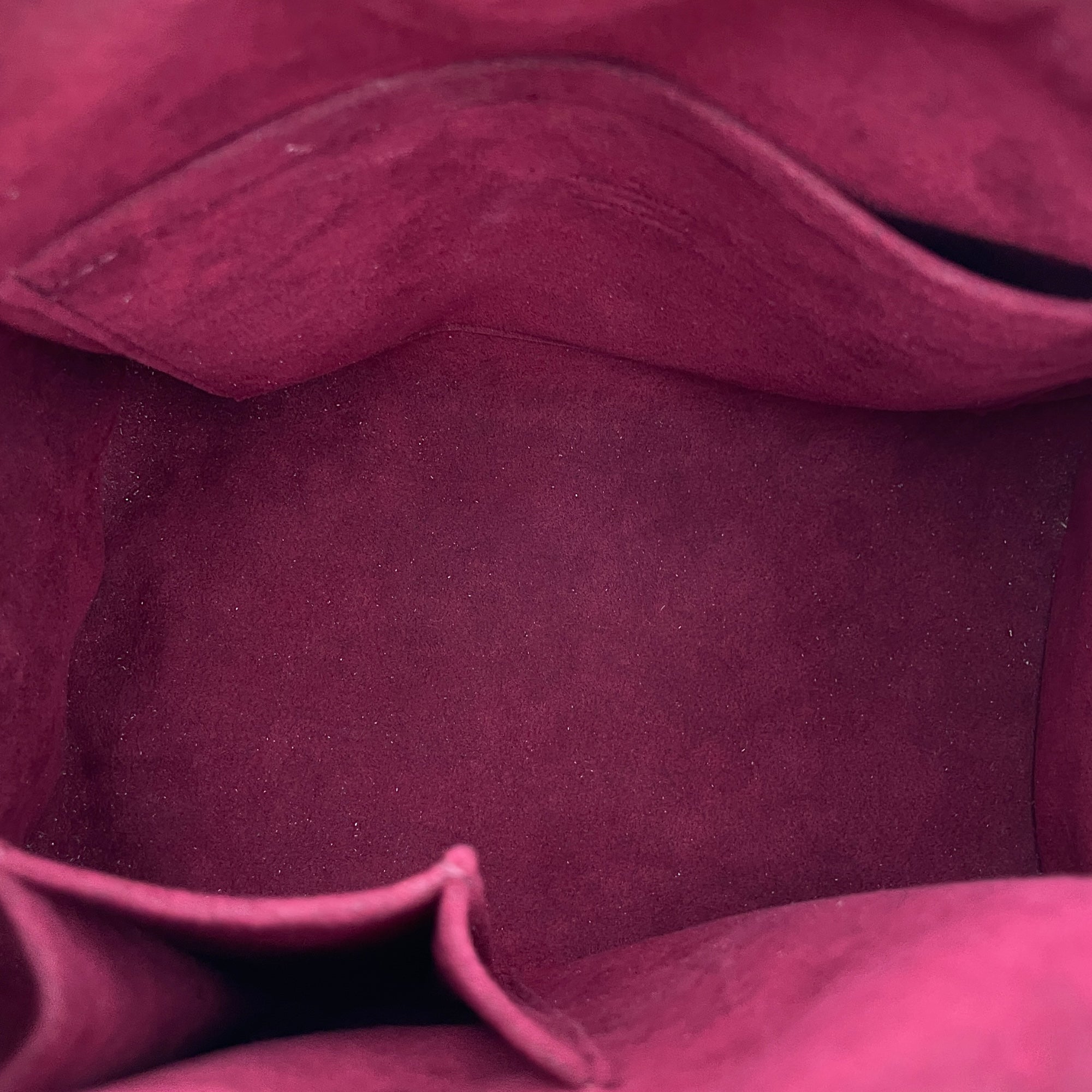 – Surface: Stains and scuffing on the leather – Compartments: Marks on the interior