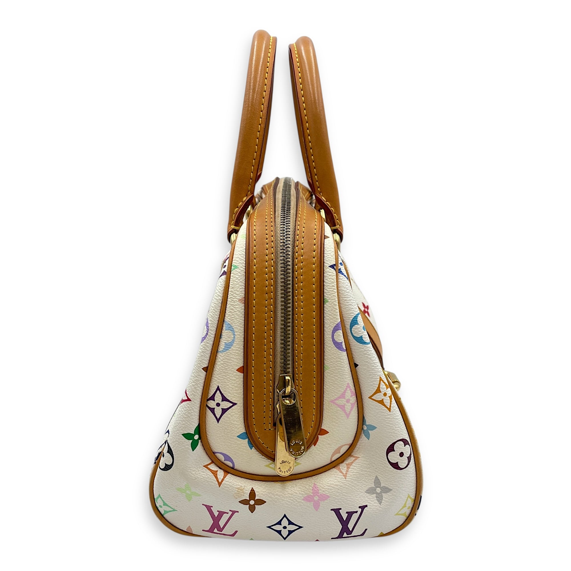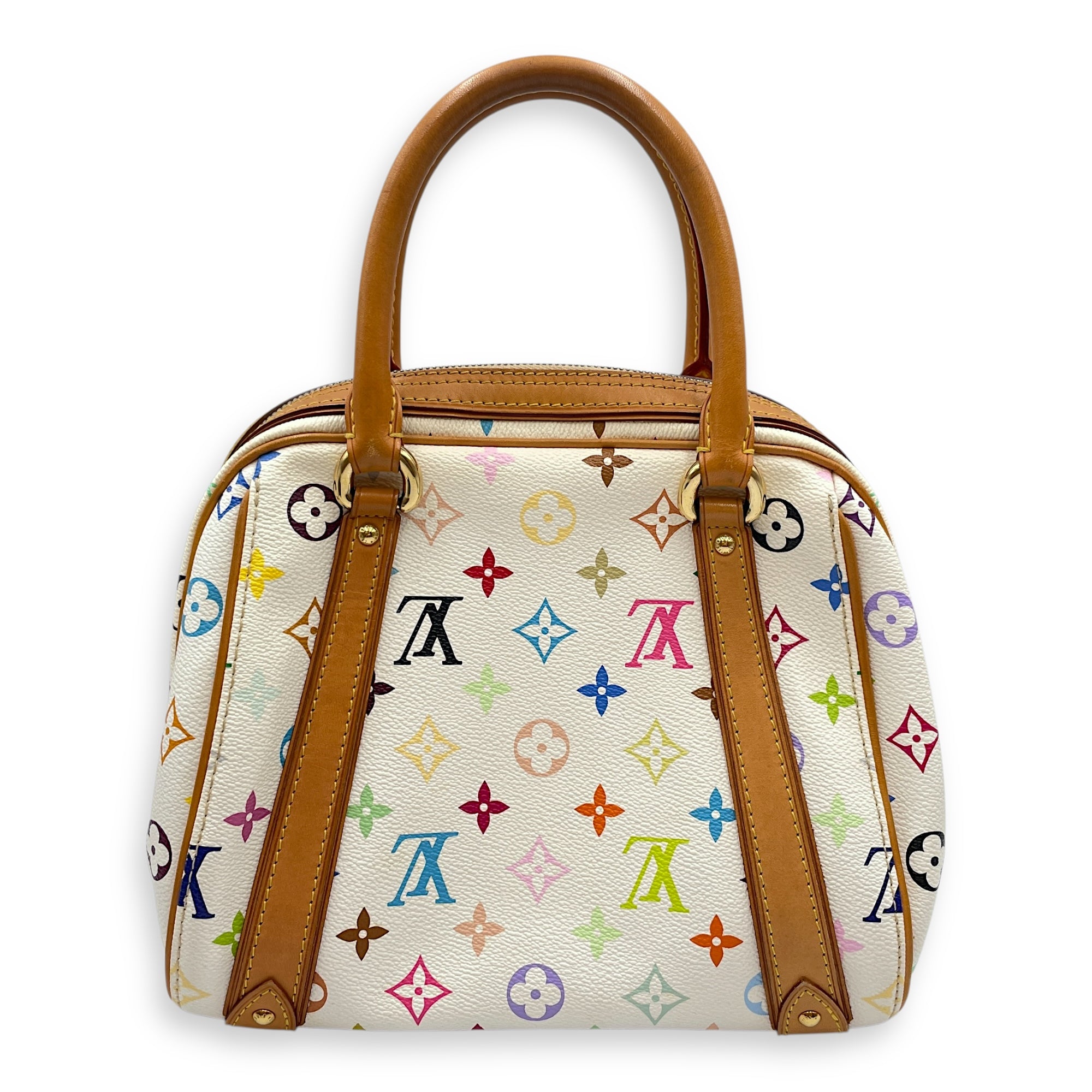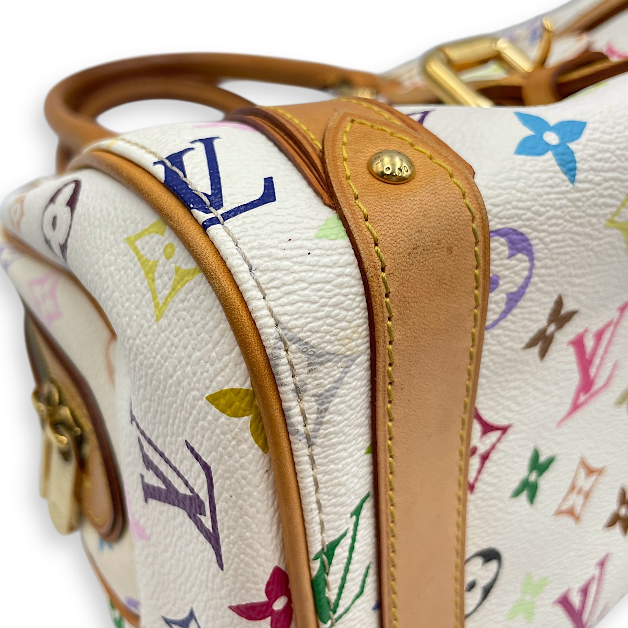– Surface: Stains and scuffing on the leather – Compartments: Marks on the interior