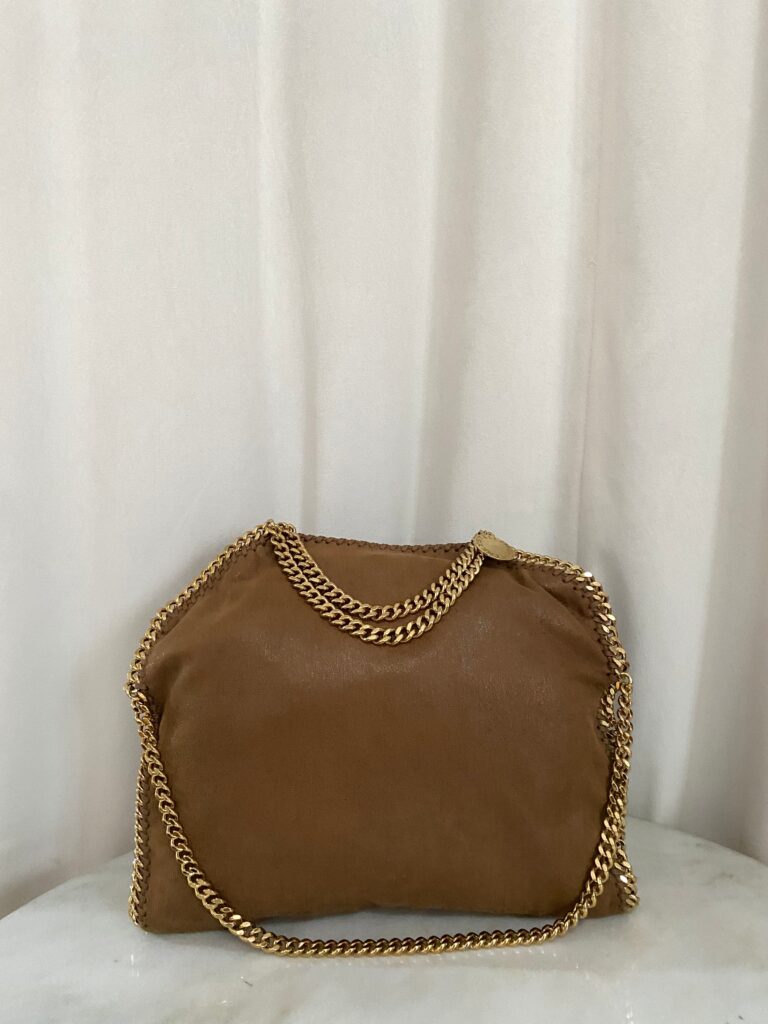This compact bag has a well-organized interior for your daily items. You can carry it in different ways with its two handles and removable chain-and-leather strap.