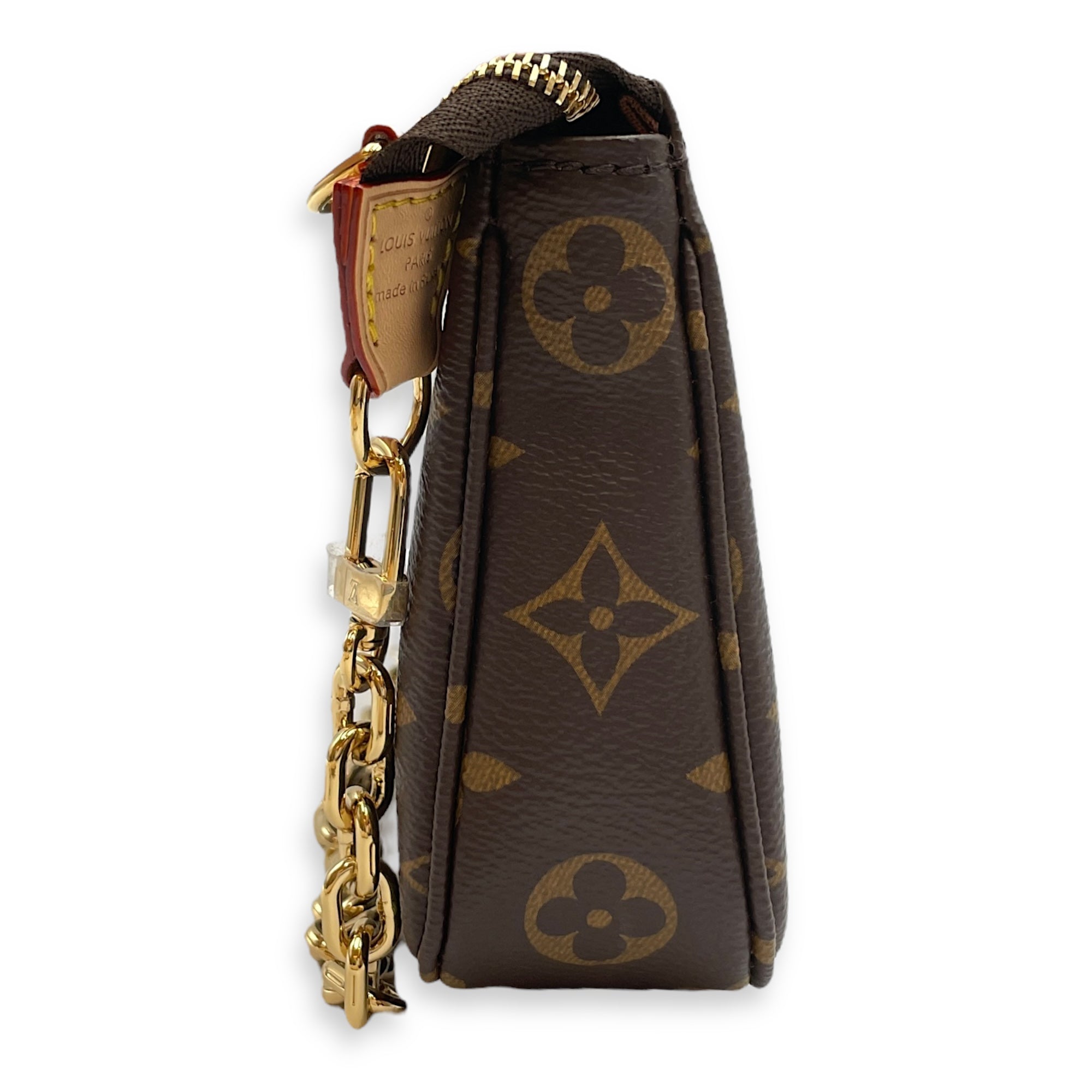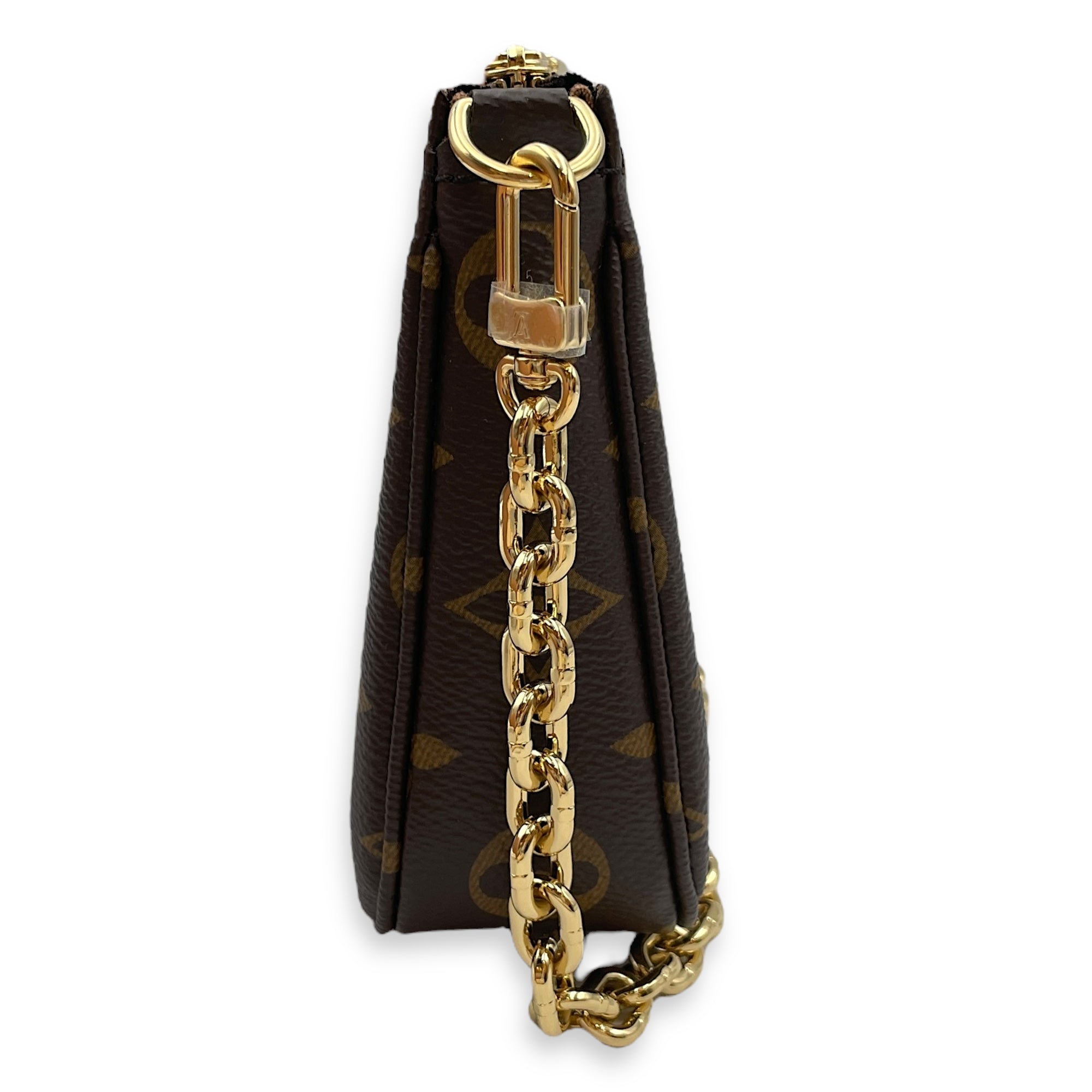 Pochette Monogram Brown Shoulder Bag in Canvas, Gold hardware