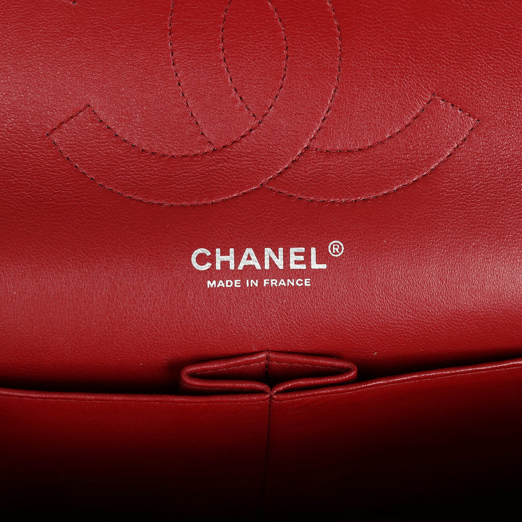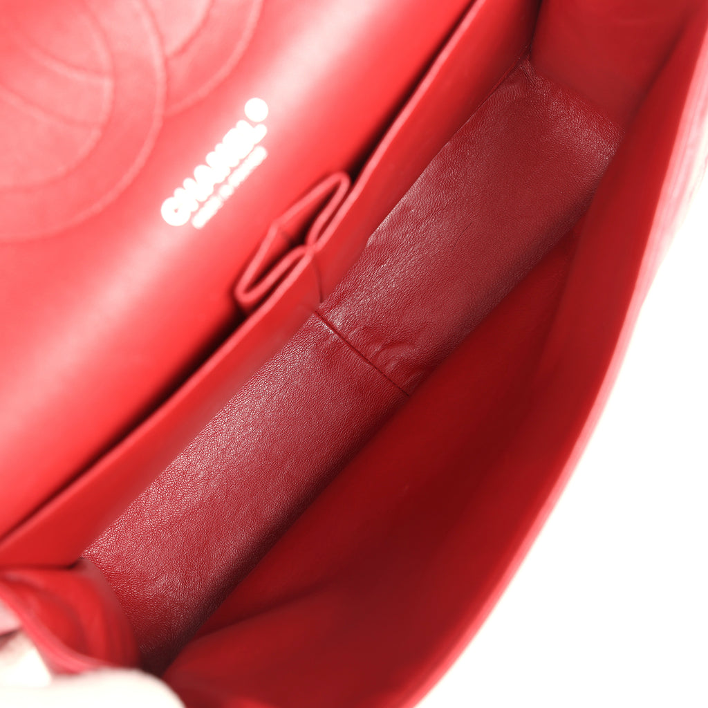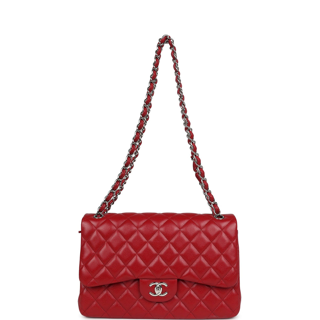 Pre-owned Chanel Jumbo Classic Double Flap Red Caviar Silver Hardware Shop for an authentic pre-owned Chanel Jumbo Classic Double Flap in red caviar leather with silver hardware in mint condition at Madison Avenue Couture.