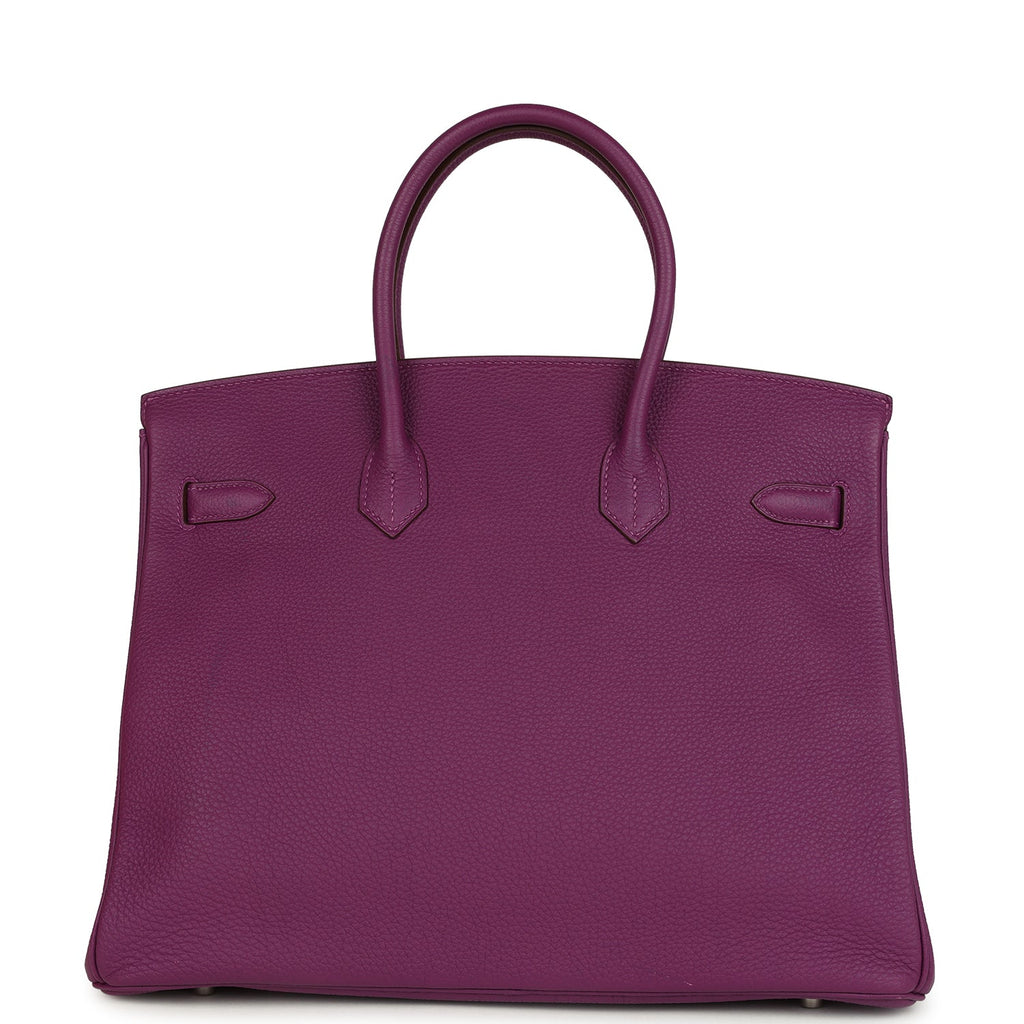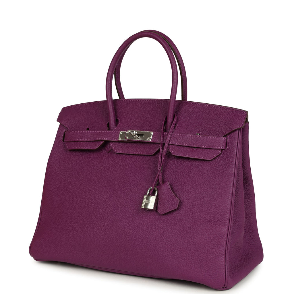 Pre-owned Hermes Birkin 35 Anemone Togo Palladium Hardware Shop for an authentic pre-owned Hermes Birkin 35 in Anemone togo leather with palladium hardware in excellent condition at Madison Avenue Couture.