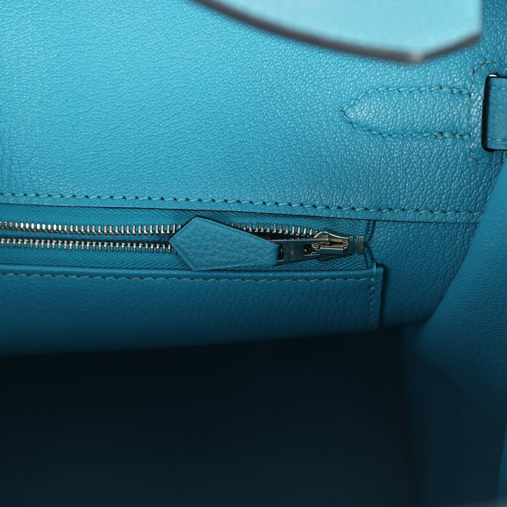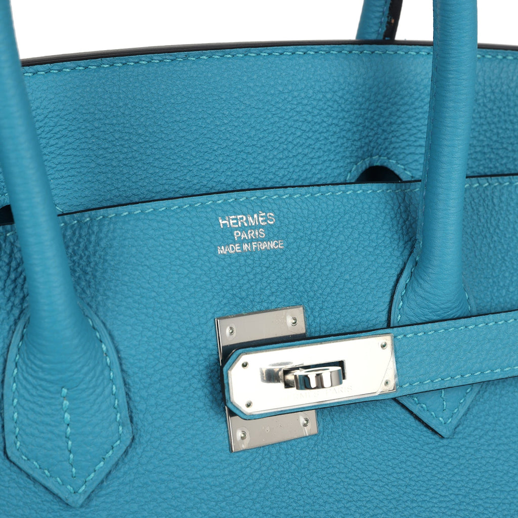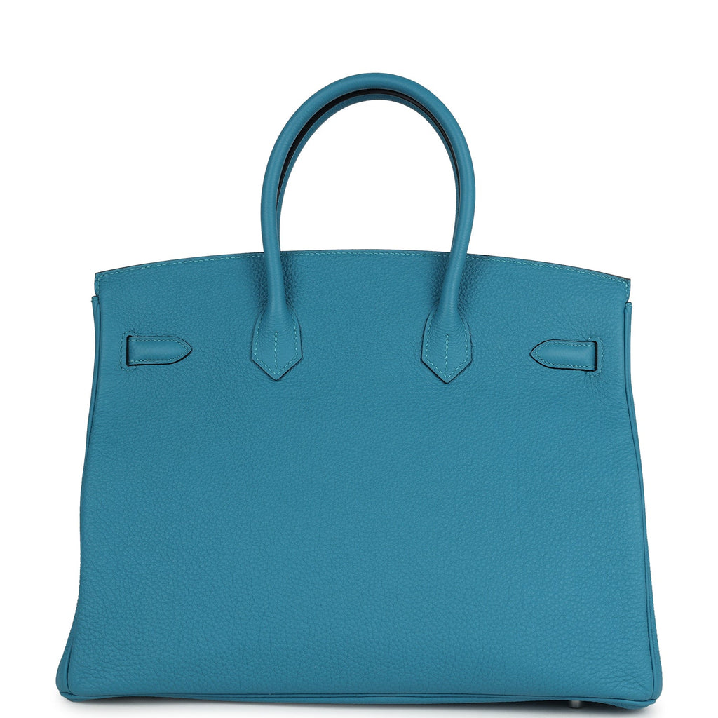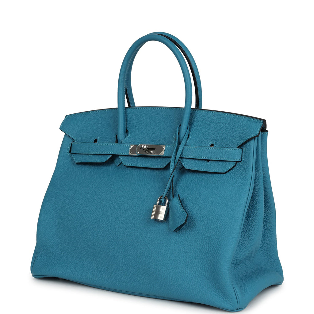 Pre-owned Hermes Birkin 35 Turquoise Togo Palladium Hardware Shop for an authentic pre-owned Hermes Birkin 35 Bleu Atoll togo leather with palladium hardware in excellent condition at Madison Avenue Couture.