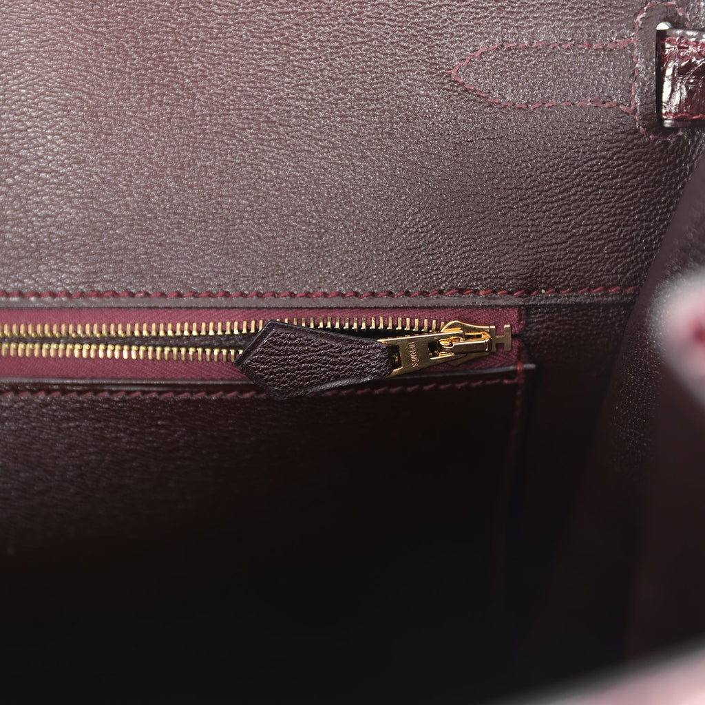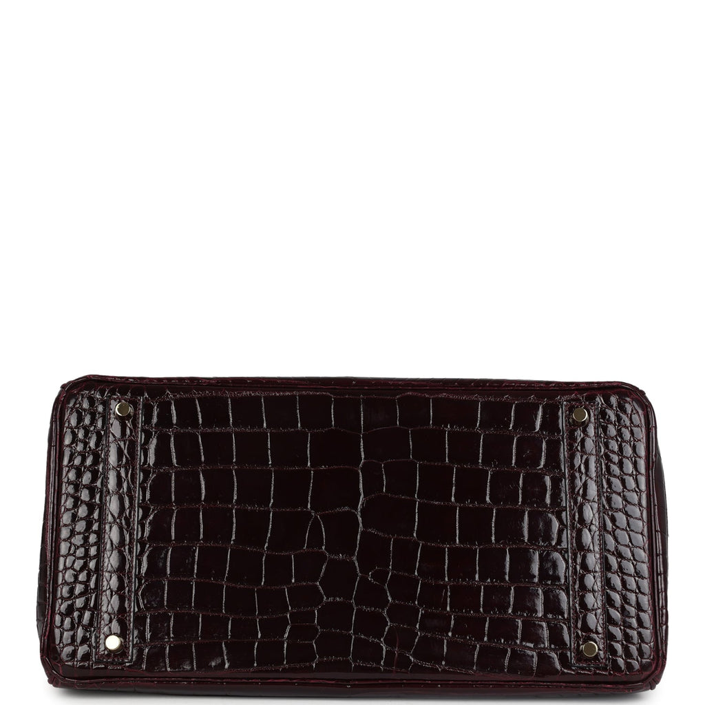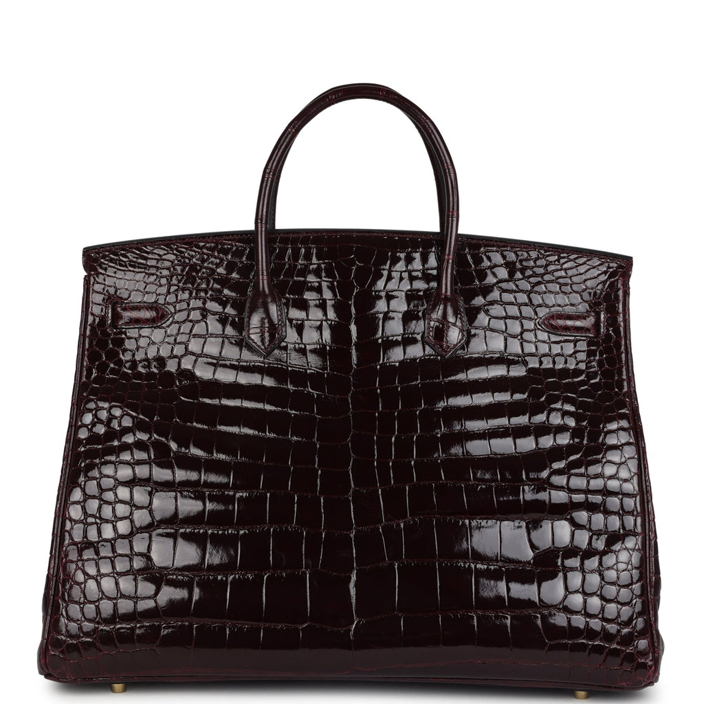 Pre-owned Hermes Birkin 40 Bordeaux Shiny Porosus Crocodile Gold Hardware