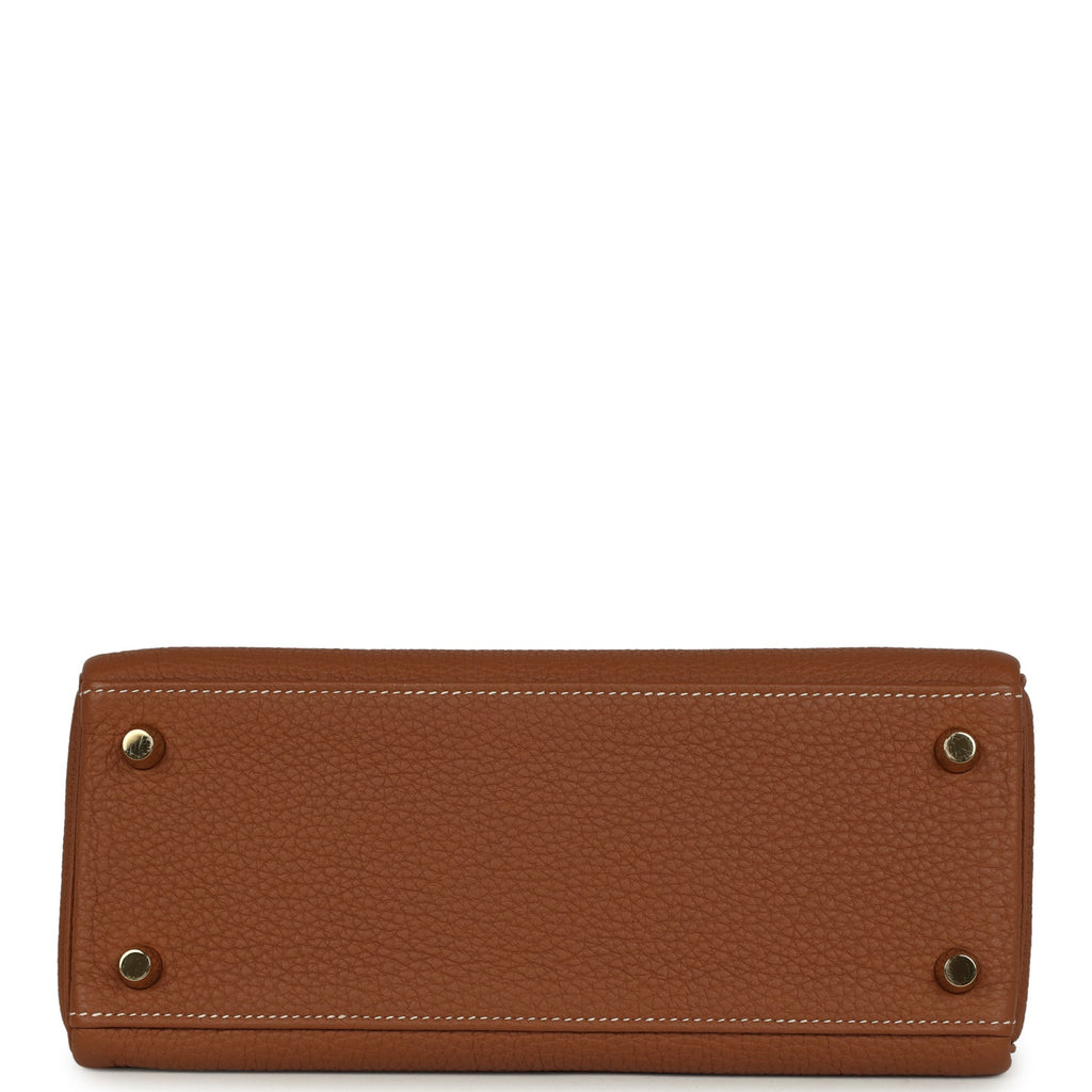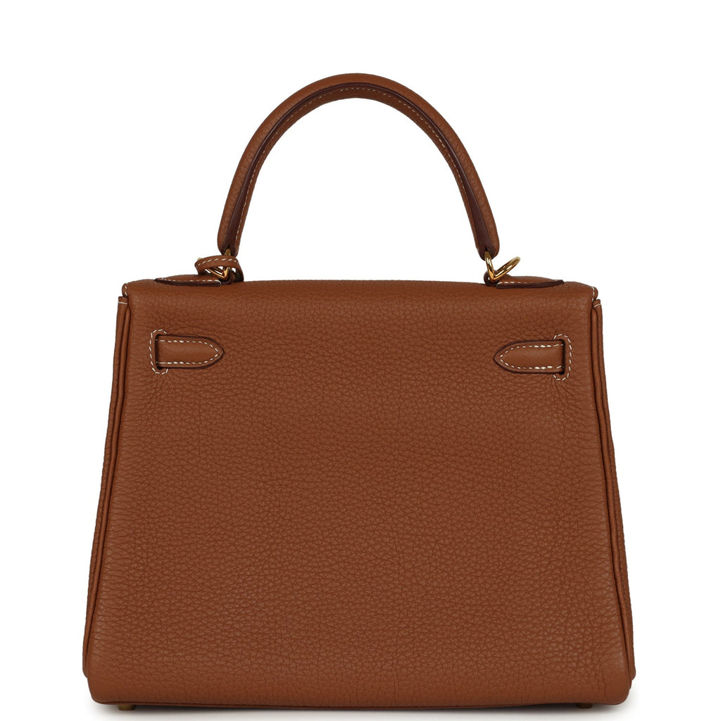 Pre-owned Hermes Kelly Retourne 25 Gold Togo Gold Hardware Shop for an authentic pre-owned Hermes Kelly Retourne 25 in Gold togo leather with gold hardware in excellent condition at Madison Avenue Couture.