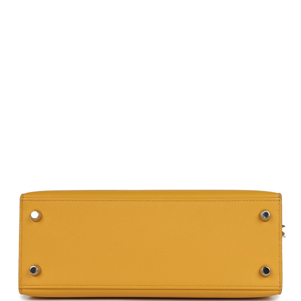 Pre-owned Hermes Kelly Sellier 25 Jaune Ambre Epsom Palladium Hardware Shop for an authentic pre-owned Hermes Kelly Sellier 25 in Jaune Ambre epsom leather with palladium hardware in excellent condition at Madison Avenue Couture.