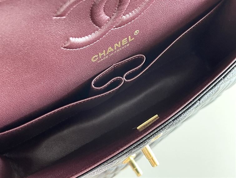 Quilted Caviar Leather Gold-Tone Black Classic Double Flap Bag – CB035