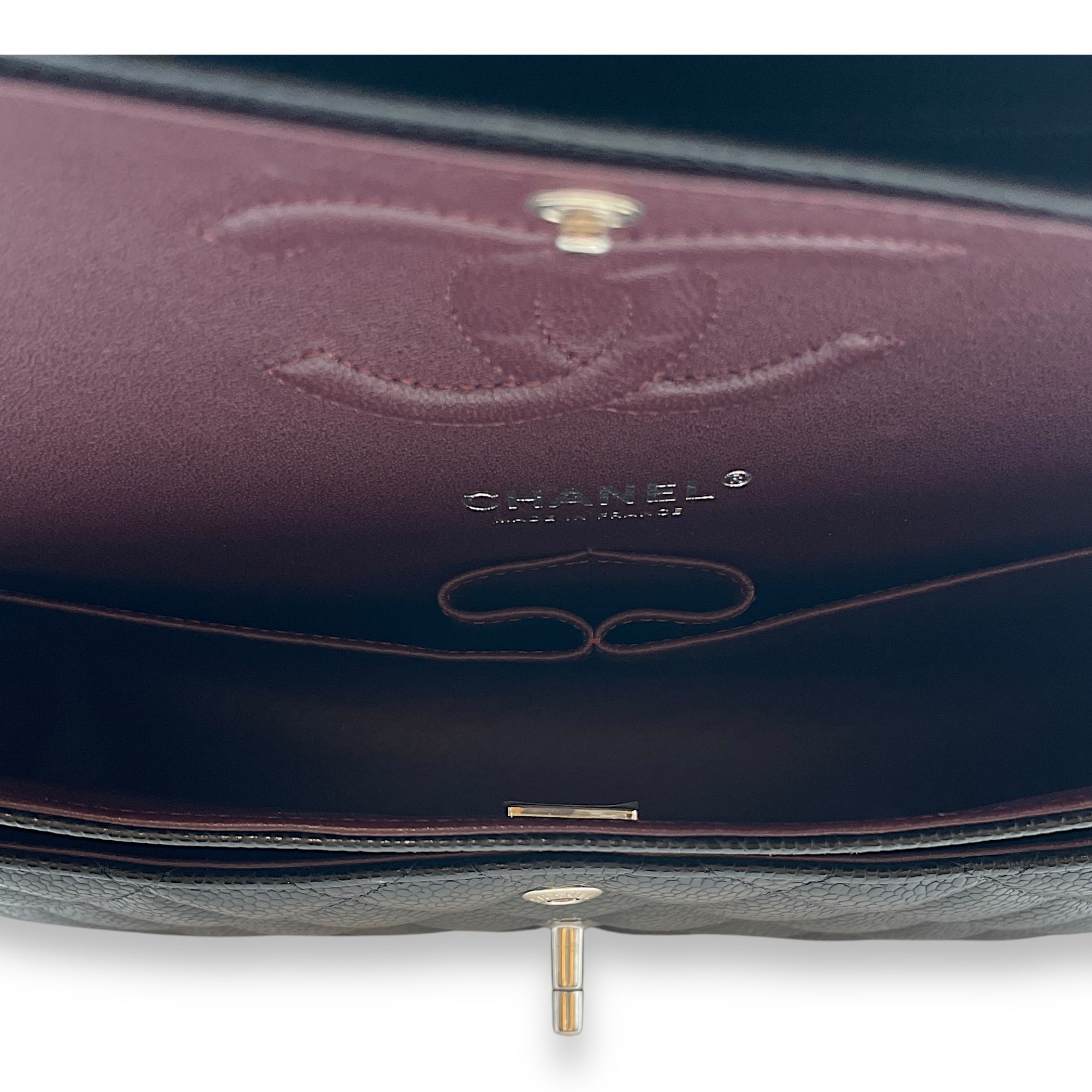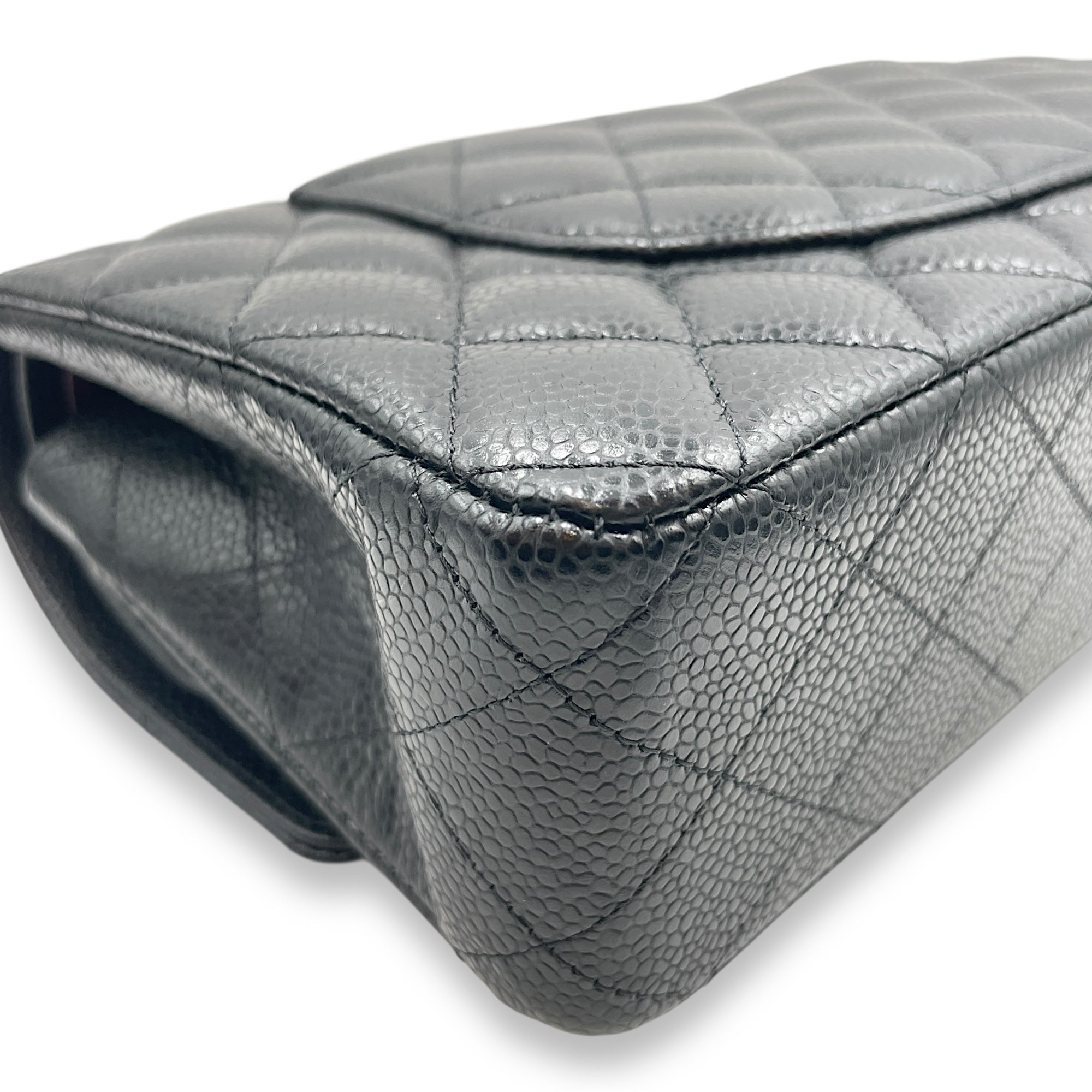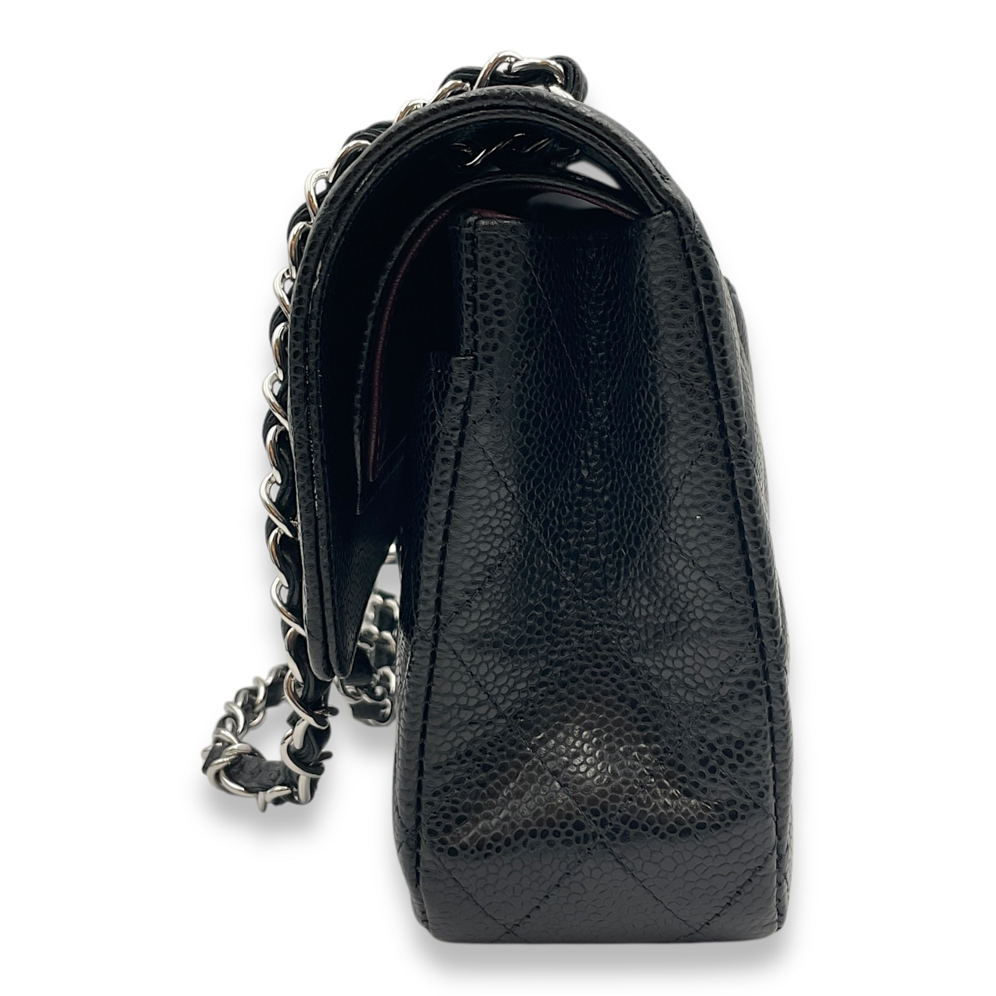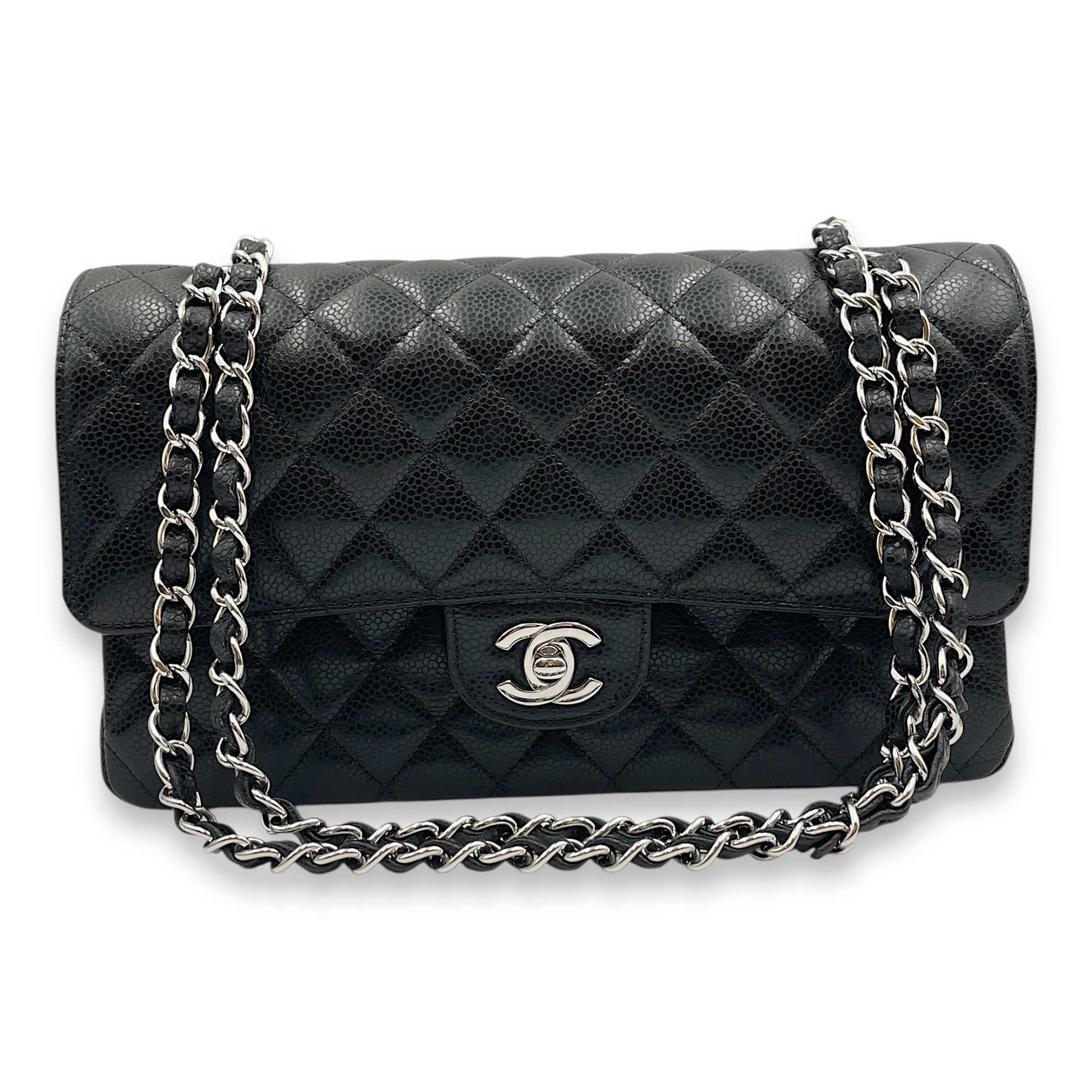 Quilted CC Classic Medium Black Double Flap Bag in Caviar Leather, Silver hardware