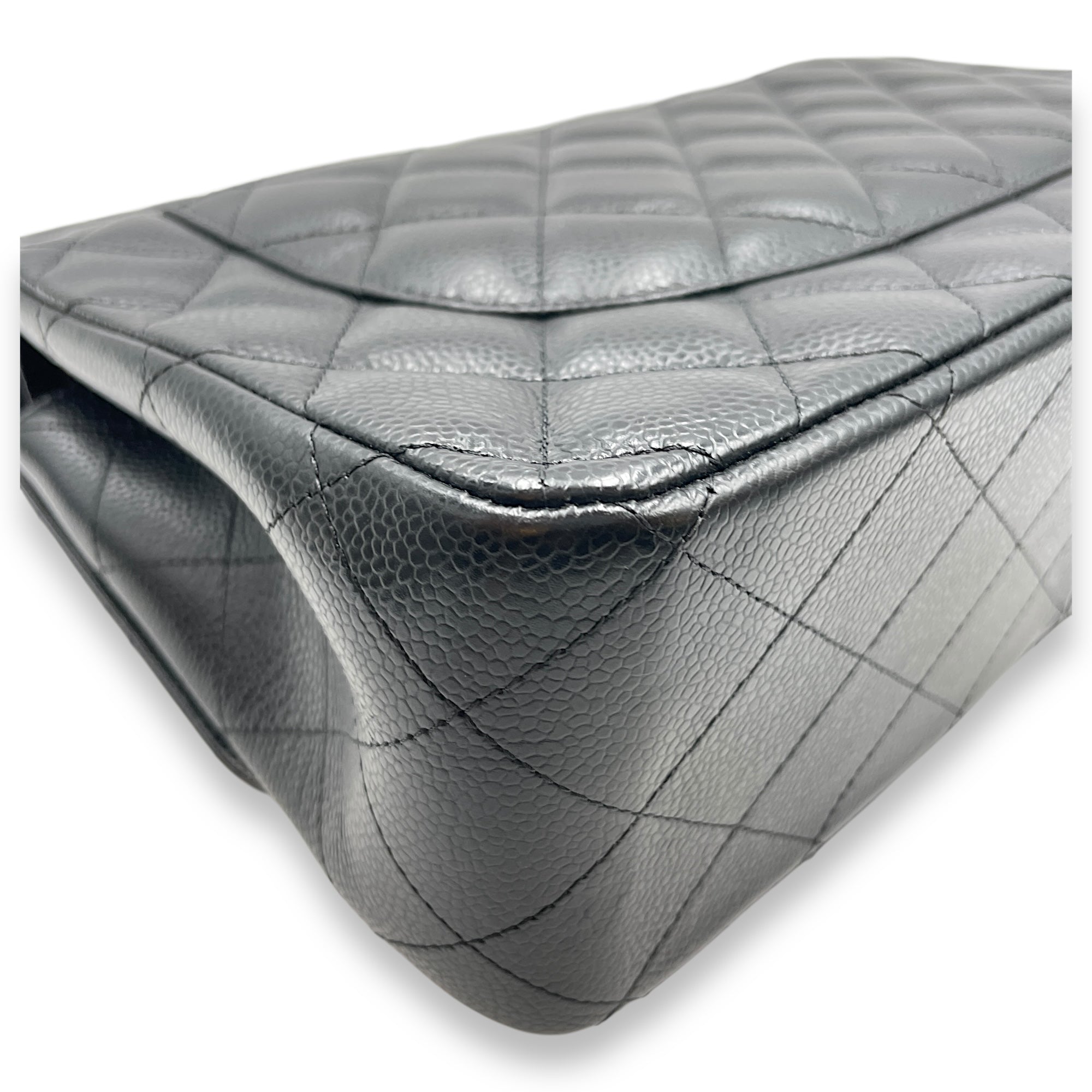 Quilted CC Jumbo Black Double Flap Bag in Caviar Leather, Silver hardware