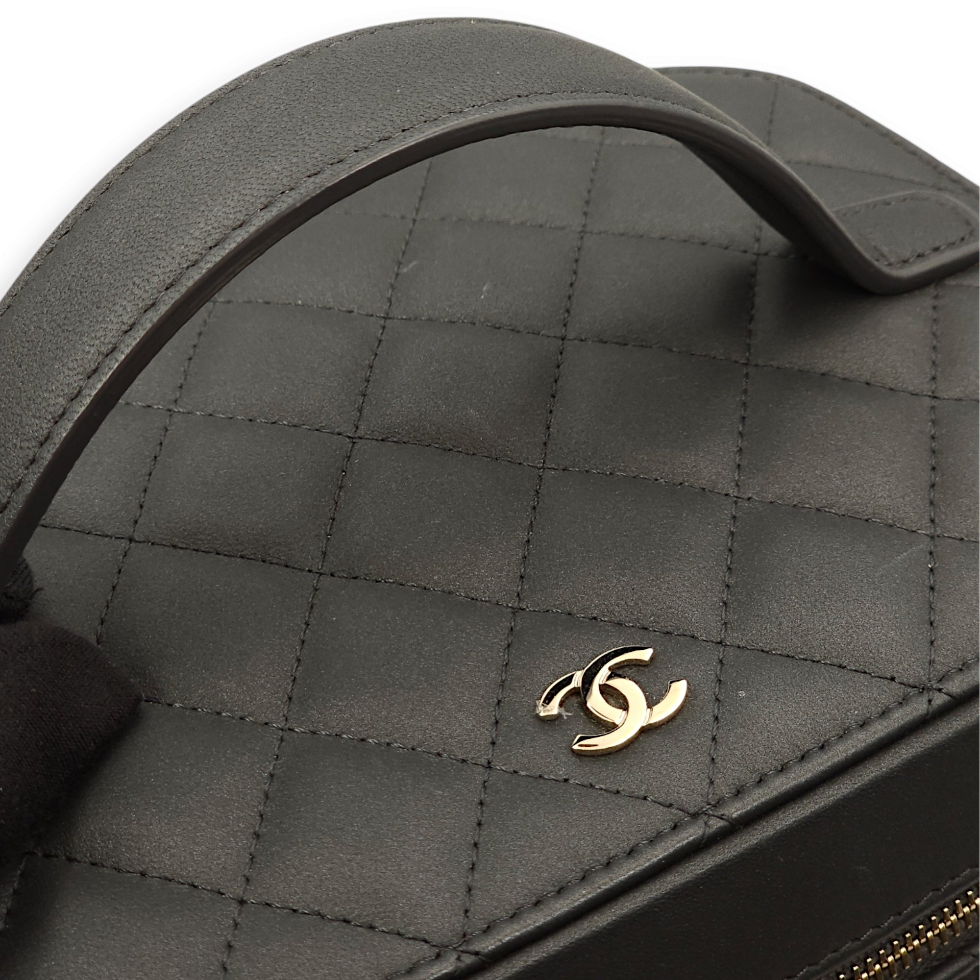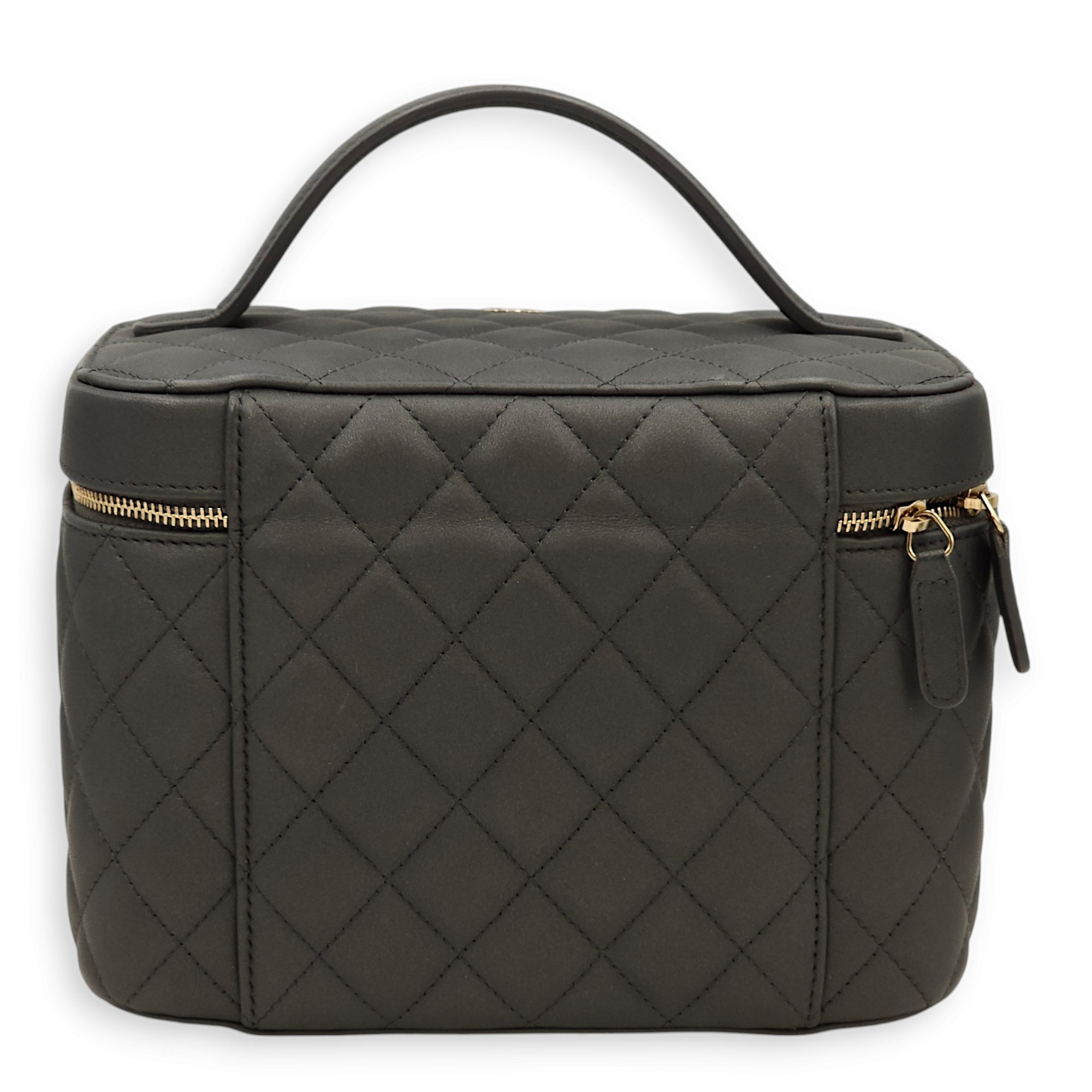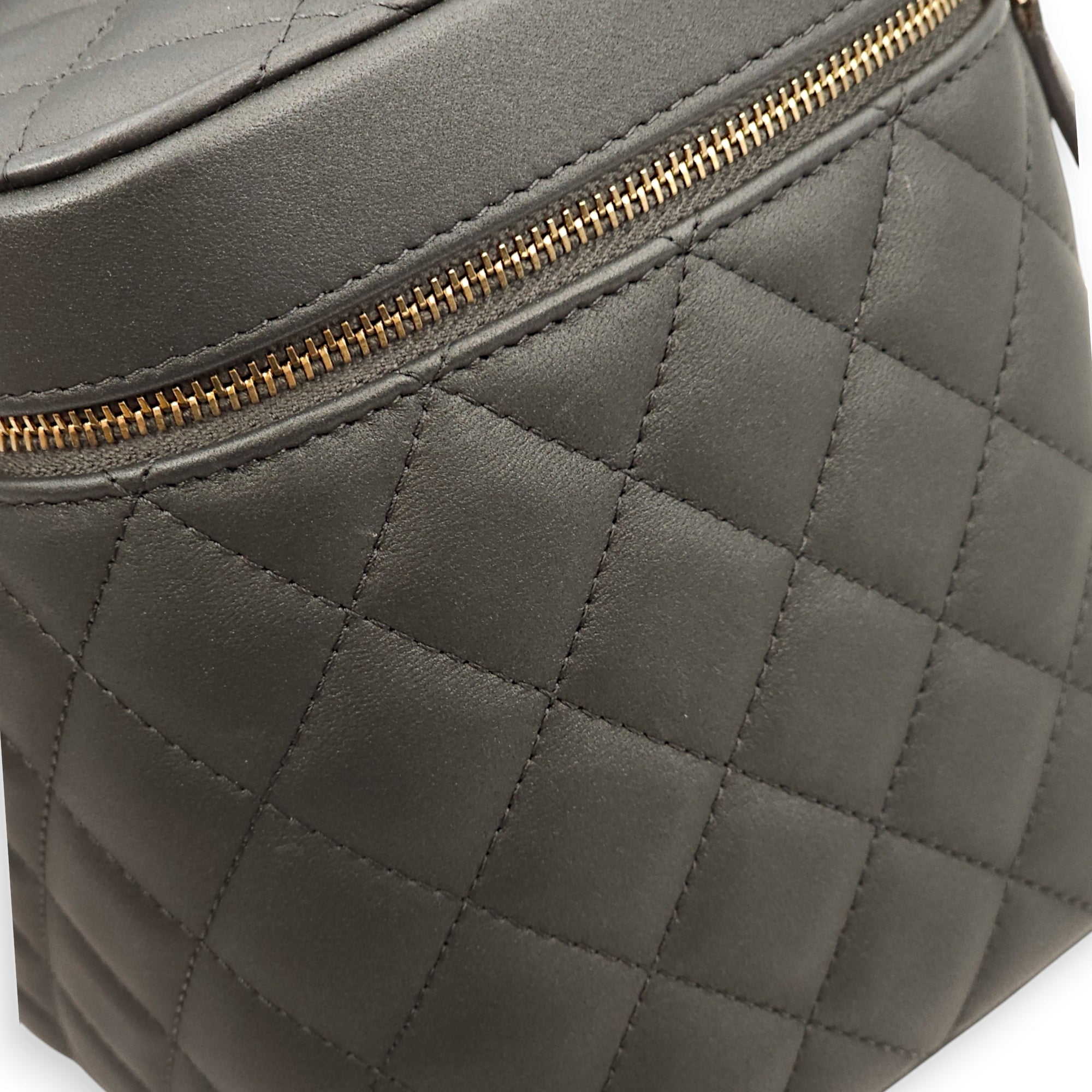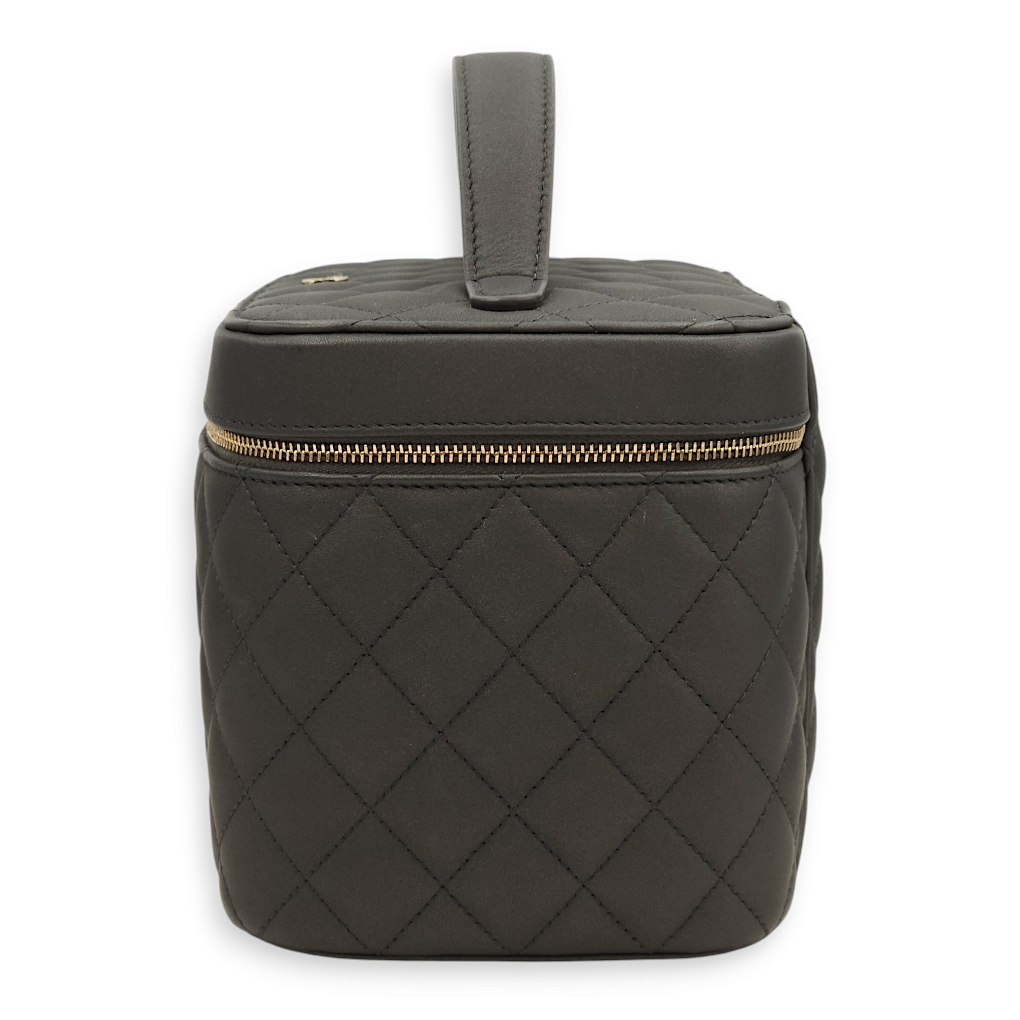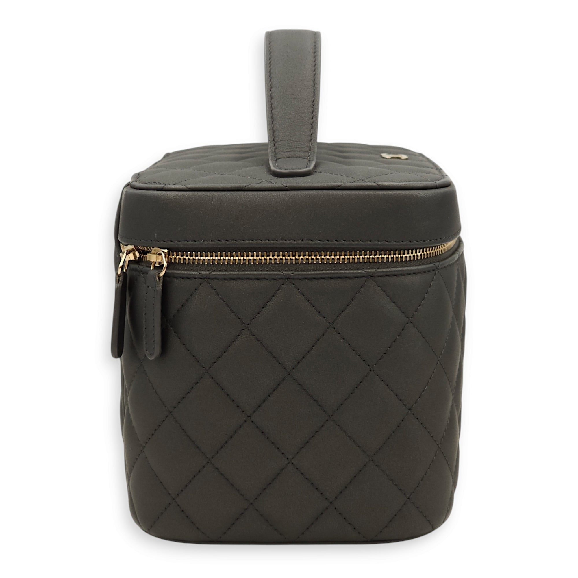 Quilted Vanity Grey Top Handle Bag in Lambskin, Gold hardware