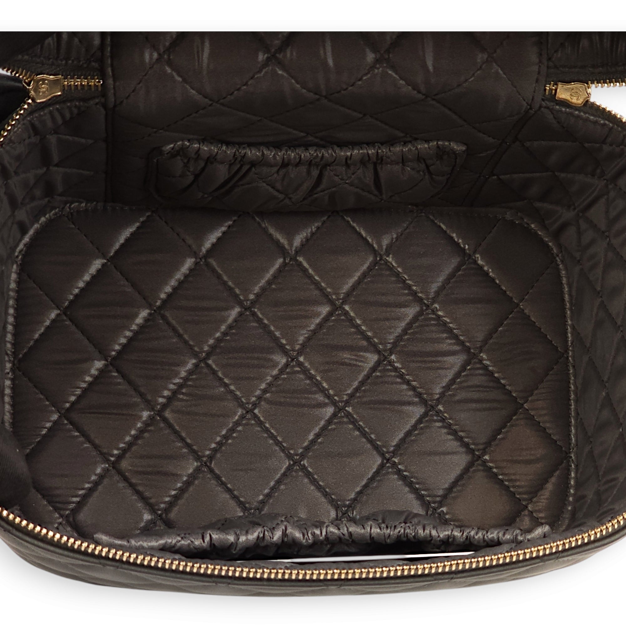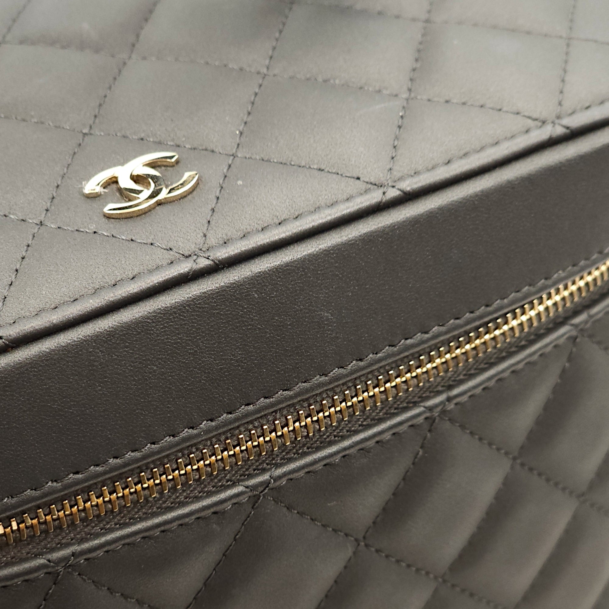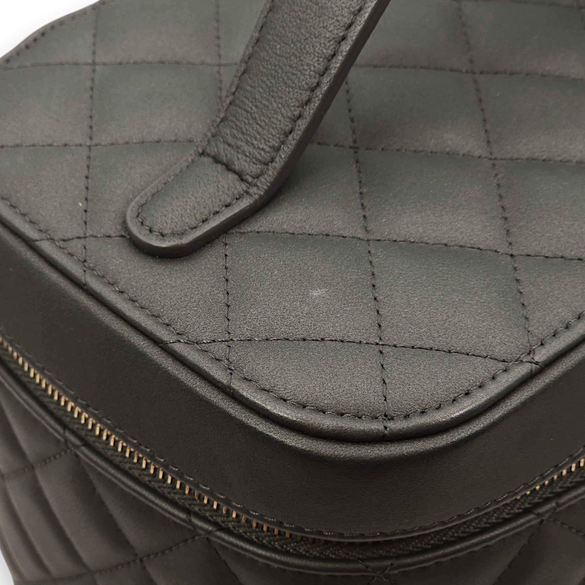 Be the first to review “Quilted Vanity Grey Top Handle Bag in Lambskin, Gold hardware”