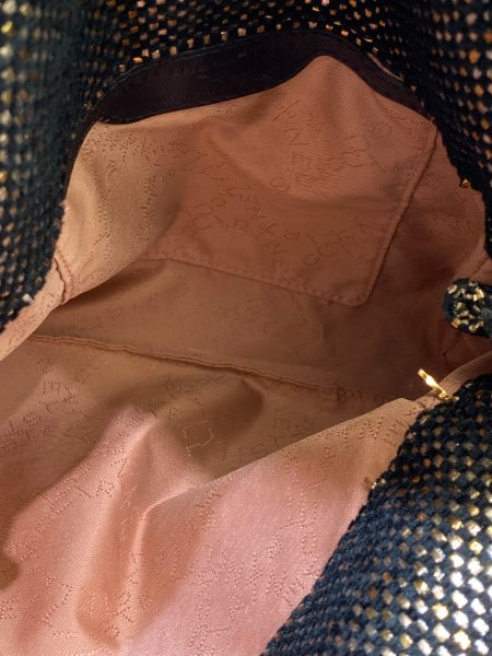 • Material: Black/Gold/Silver Fabric with Black Leather Trim