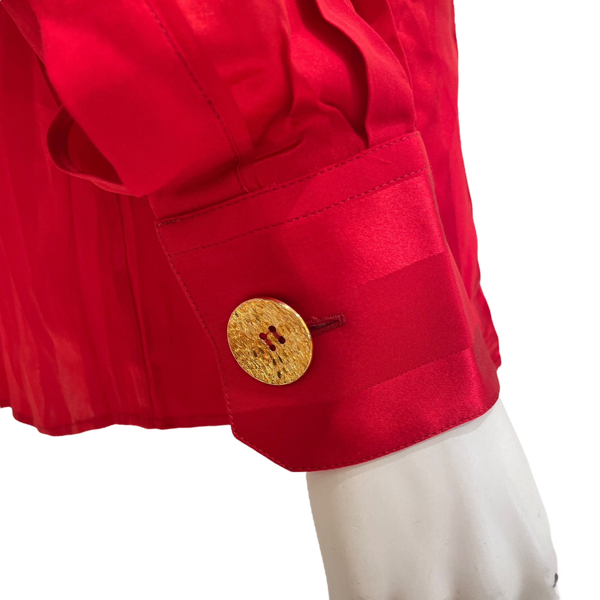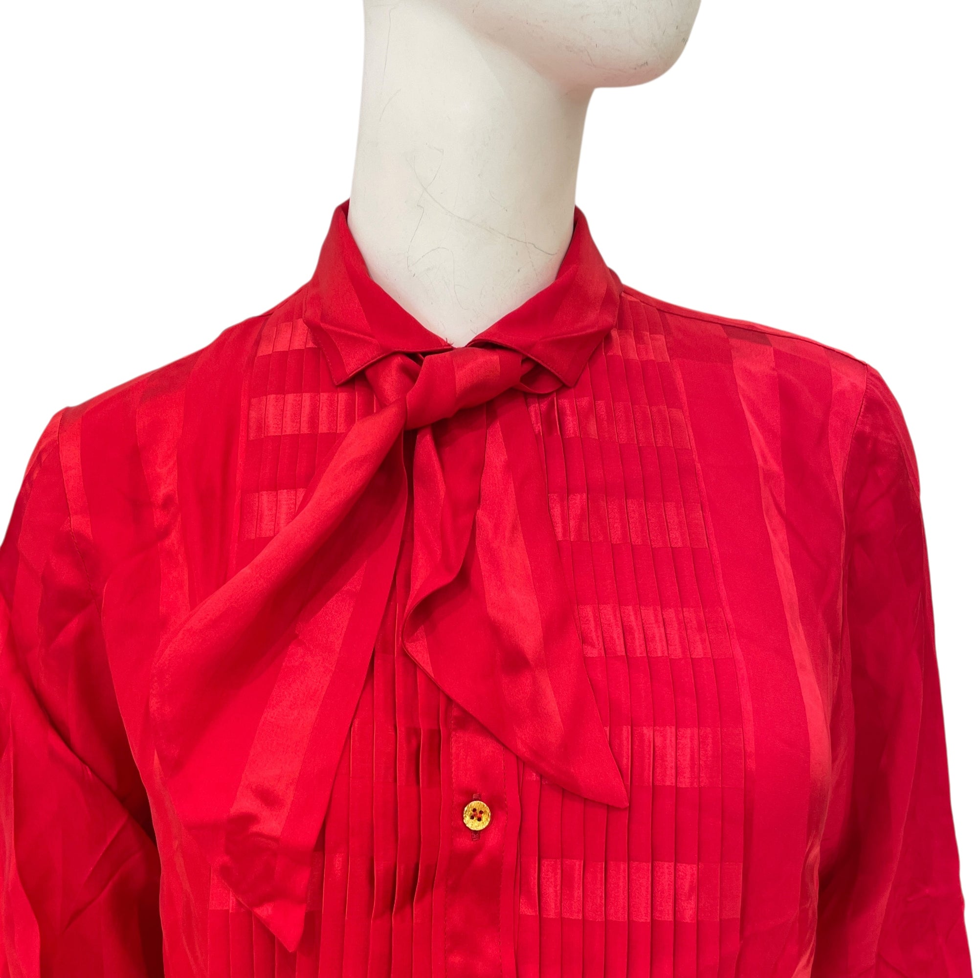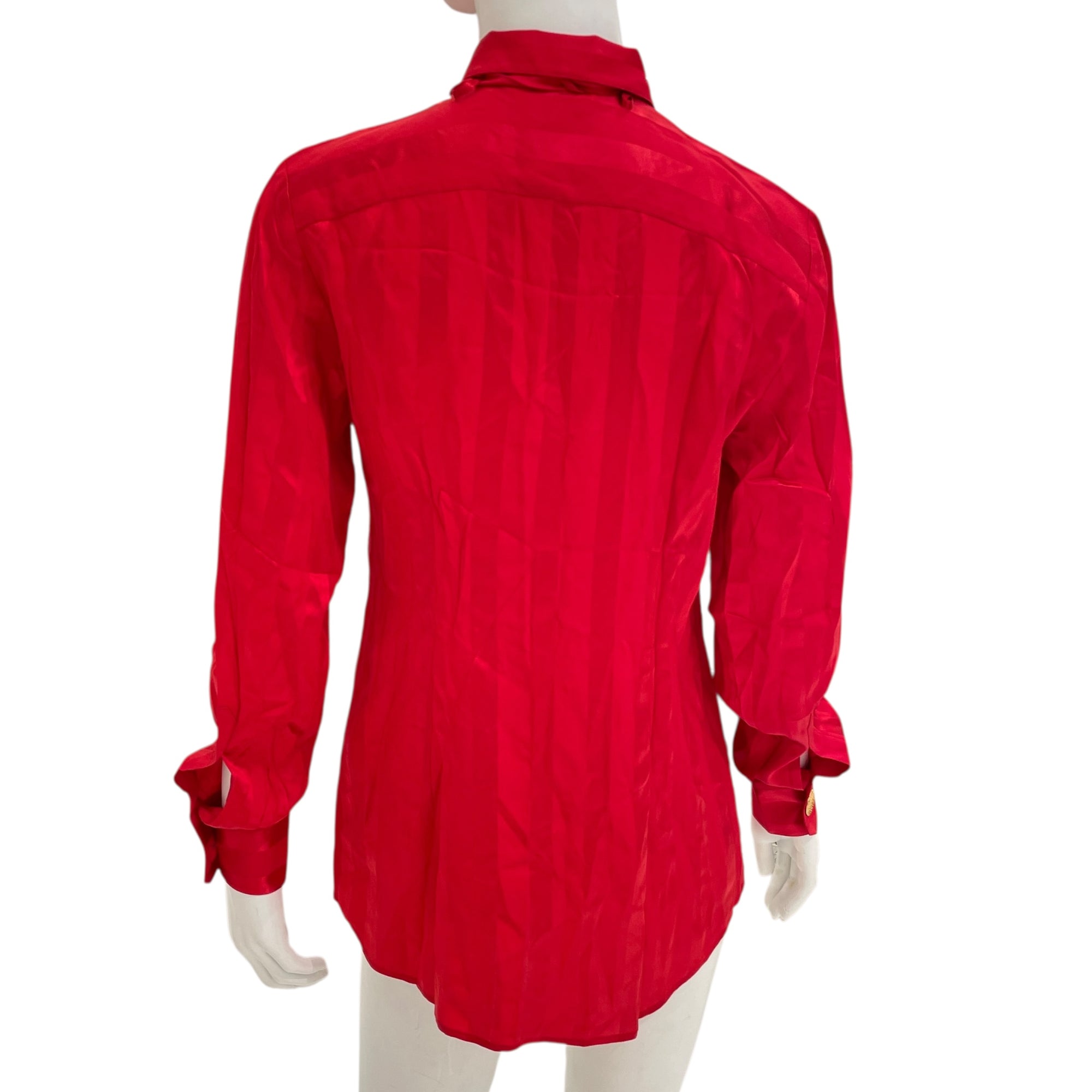 Striped Neck Scarf Detail Shirt 38 Red Ready-To-Wear in Silk, Gold hardware