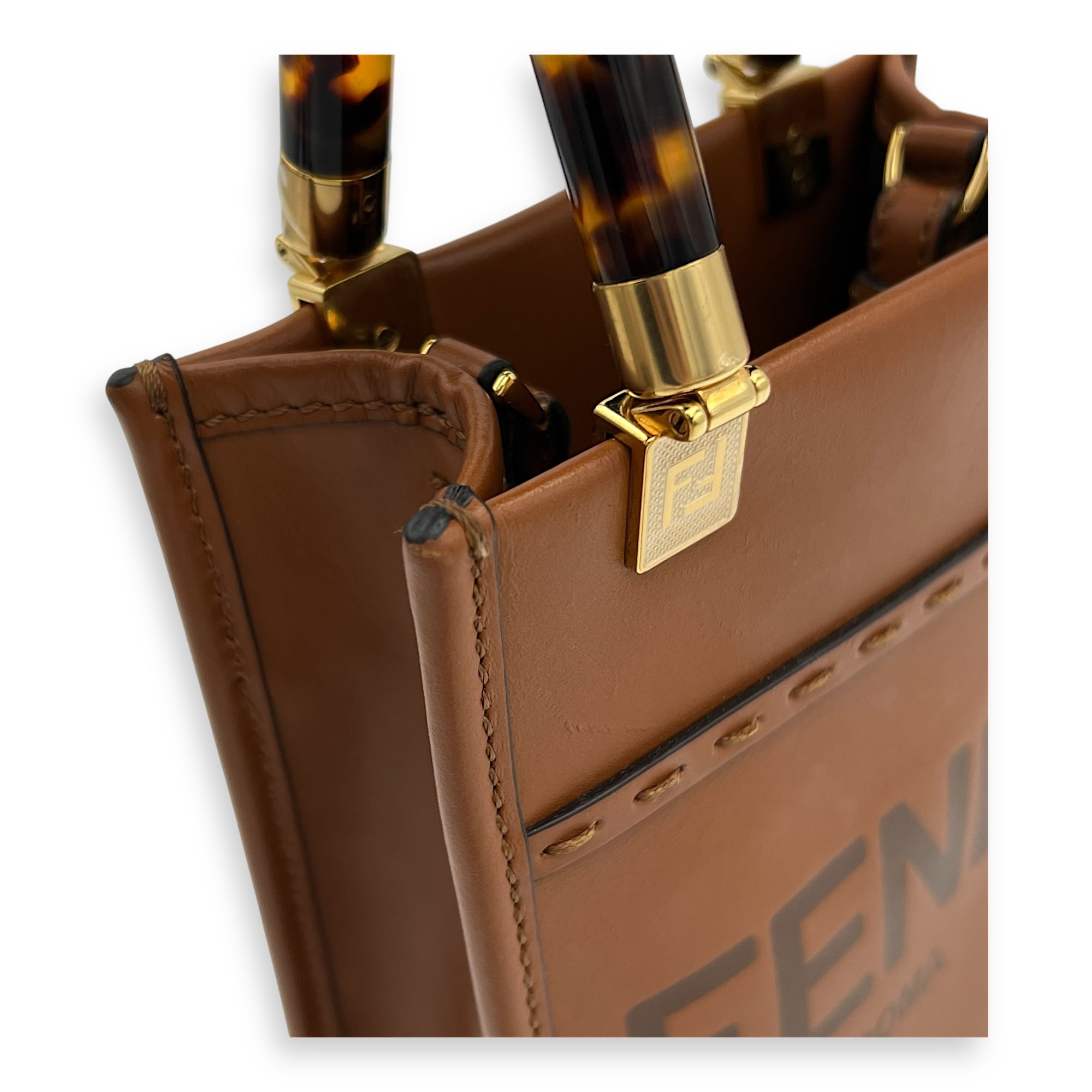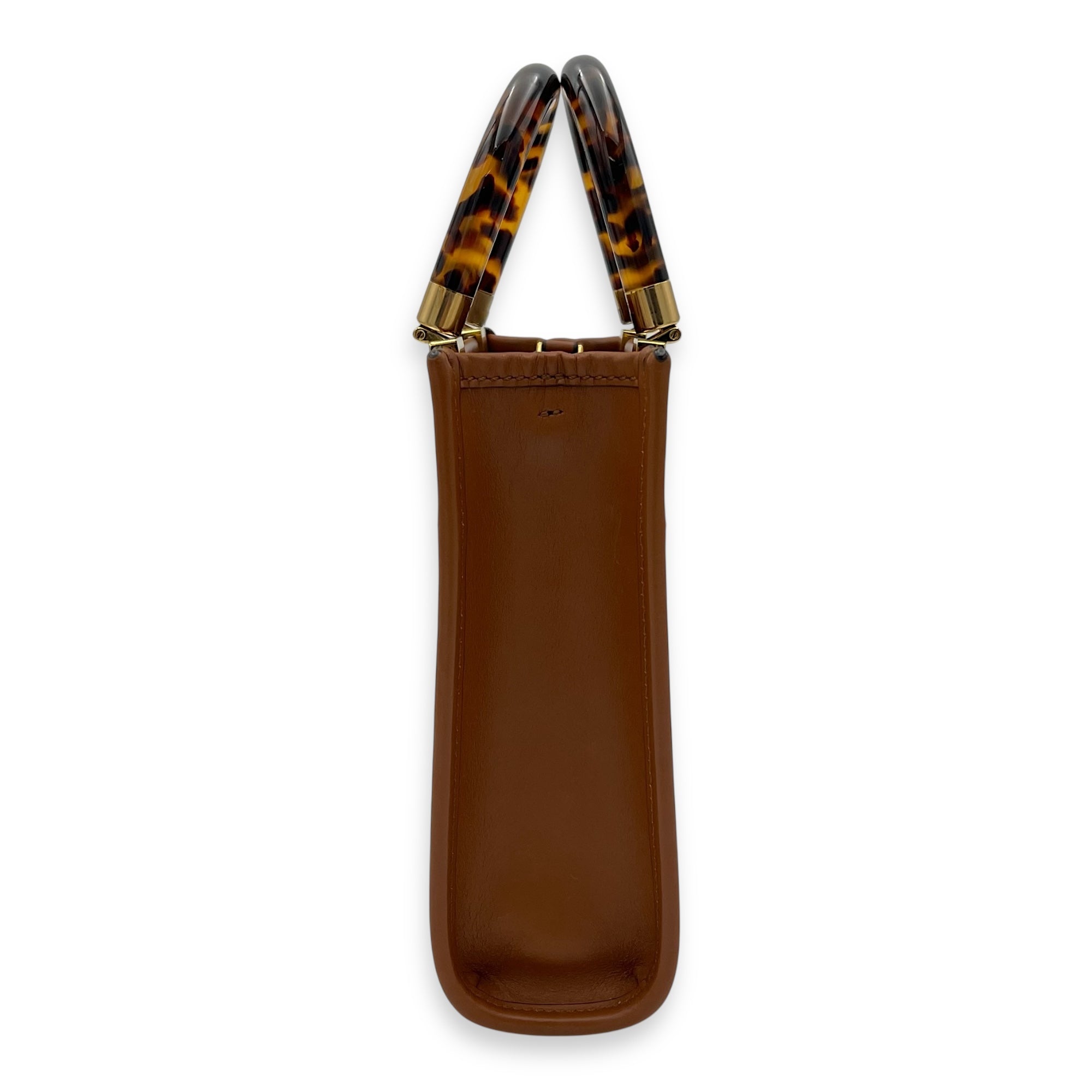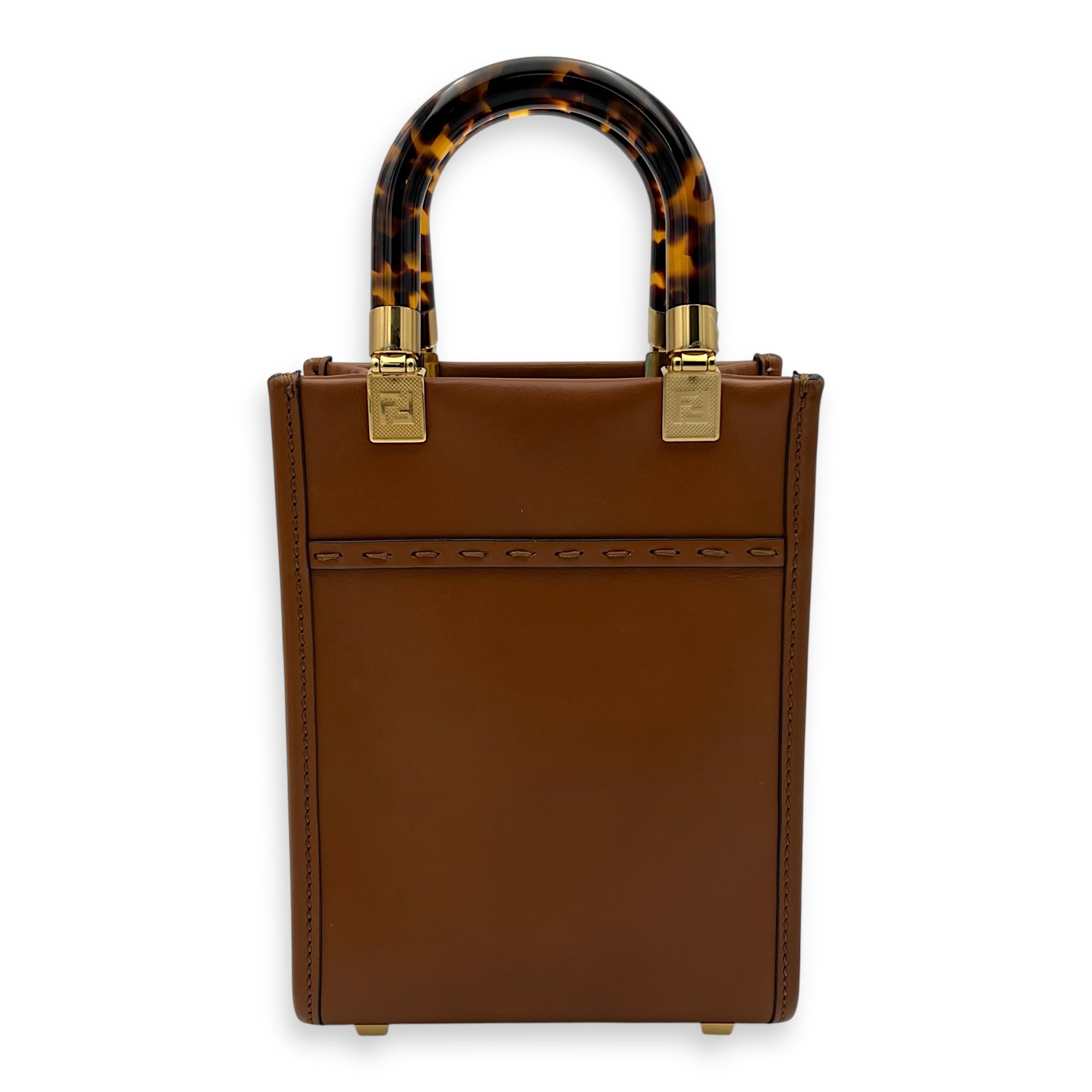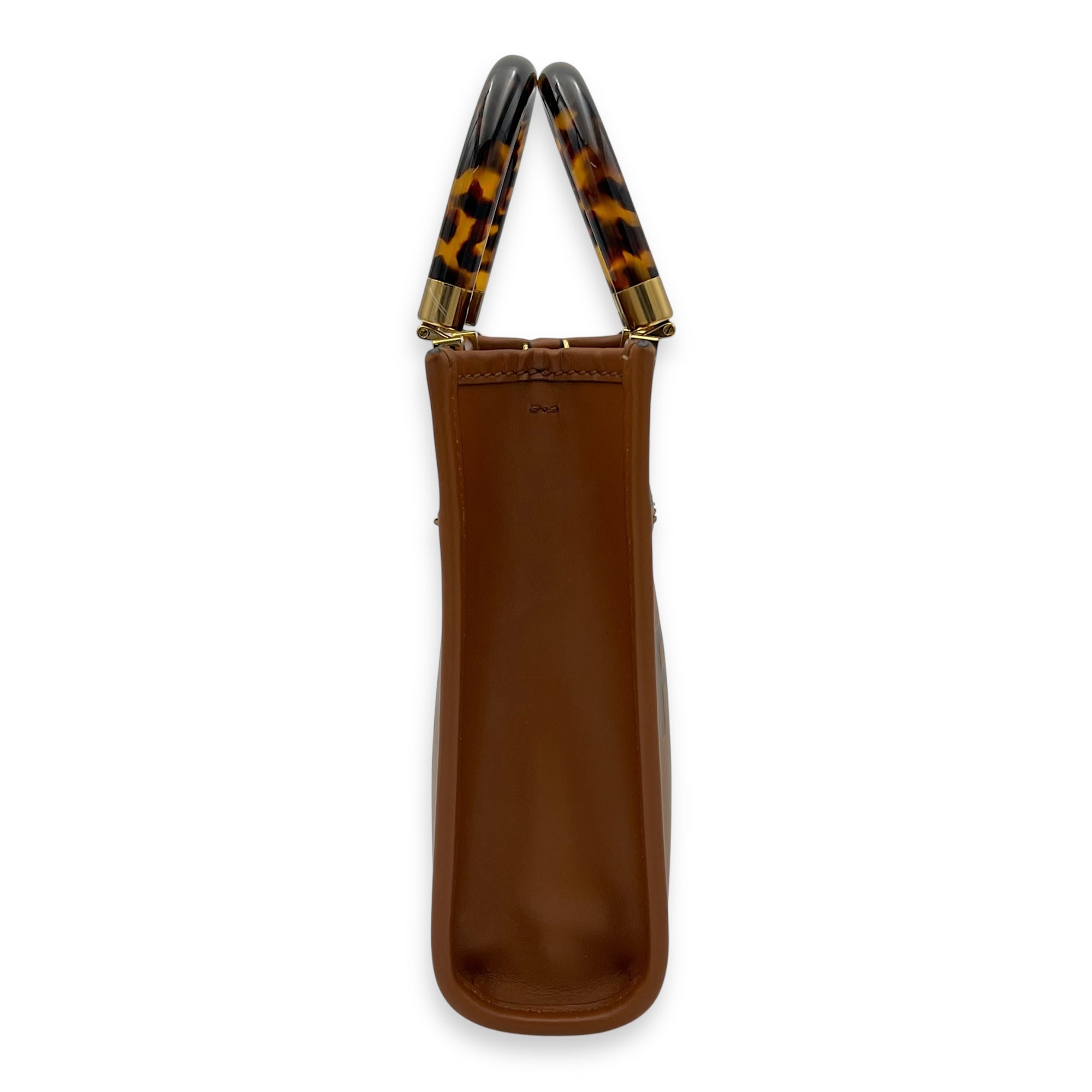 Sunshine Top Handle Bag Mini Brown in Calfskin, Gold hardware