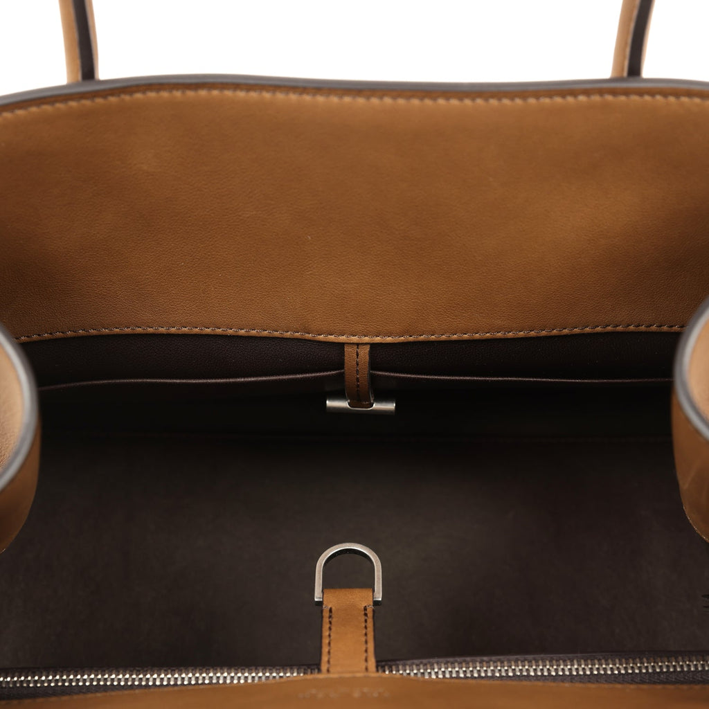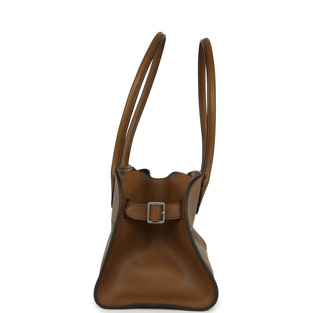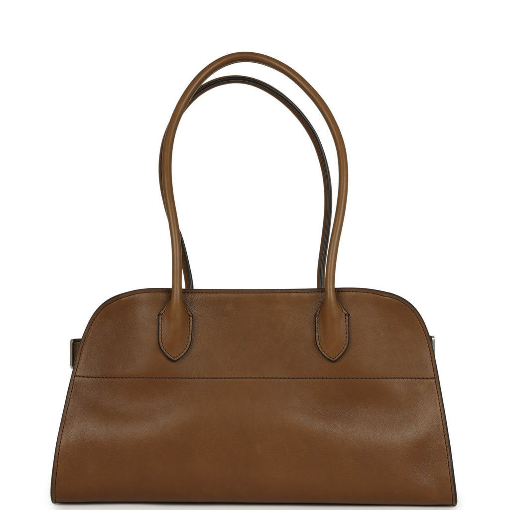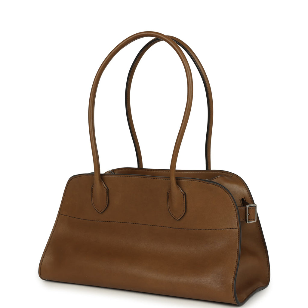 The Row Margaux Shoulder 12 Muschio Saddle Silver Hardware Shop for an authentic The Row Soft Margaux 12 Shoulder Bag is in Muschio saddle leather with silver hardware in new and never worn condition at Madison Avenue Couture.