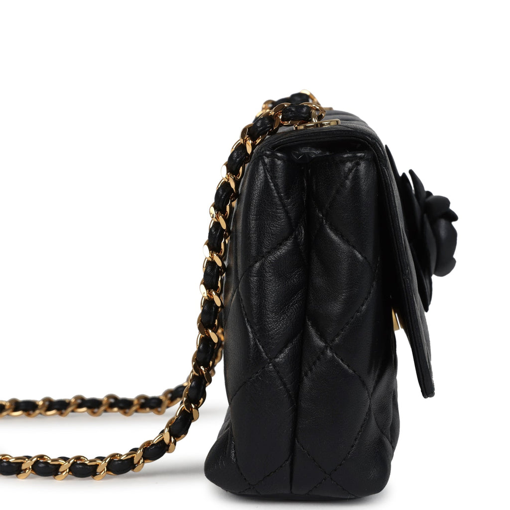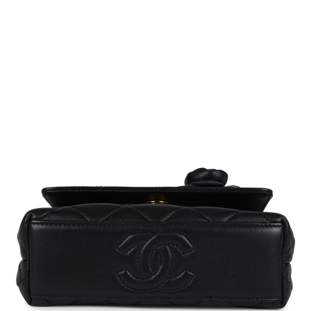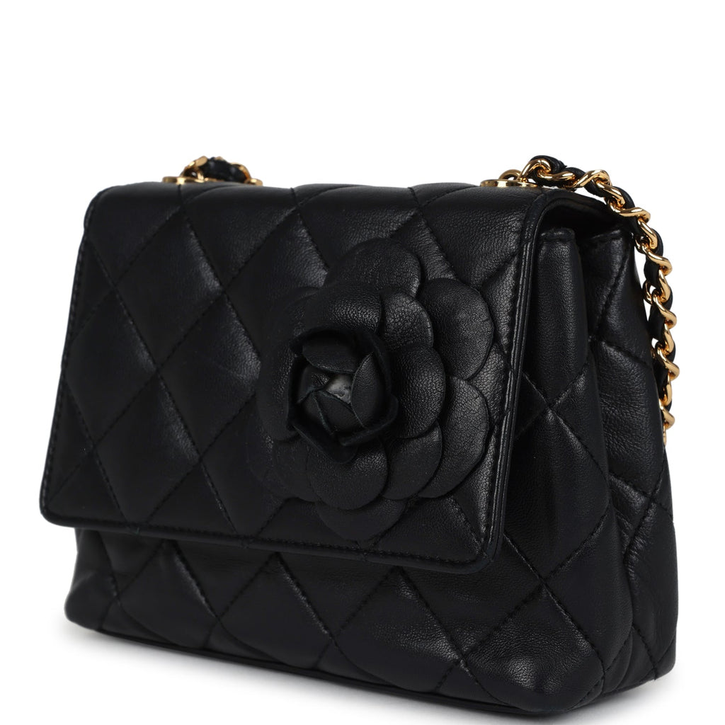 Vintage Chanel Mini Camellia Flap Bag Black Lambskin Gold Hardware Shop for an authentic vintage Chanel Mini Camellia Flap Bag in black lambskin with gold hardware in excellent condition at Madison Avenue Couture.