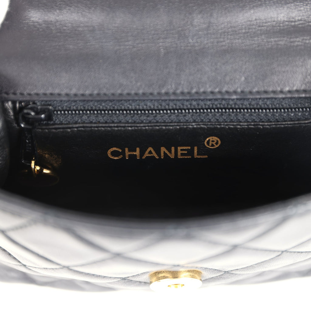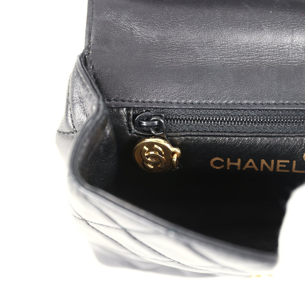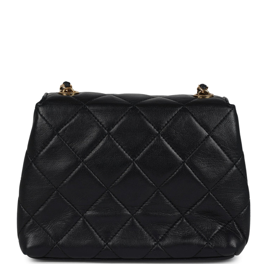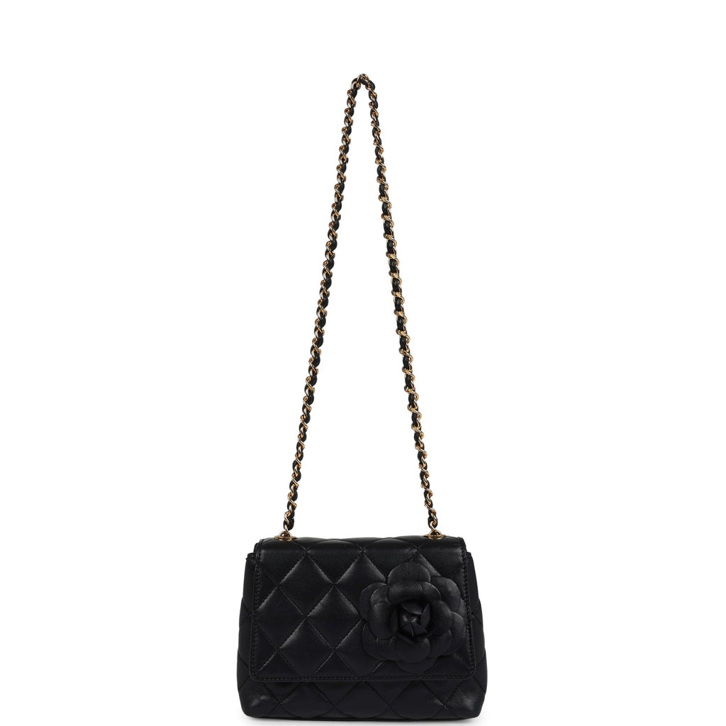 Vintage Chanel Mini Camellia Flap Bag Black Lambskin Gold Hardware Shop for an authentic vintage Chanel Mini Camellia Flap Bag in black lambskin with gold hardware in excellent condition at Madison Avenue Couture.