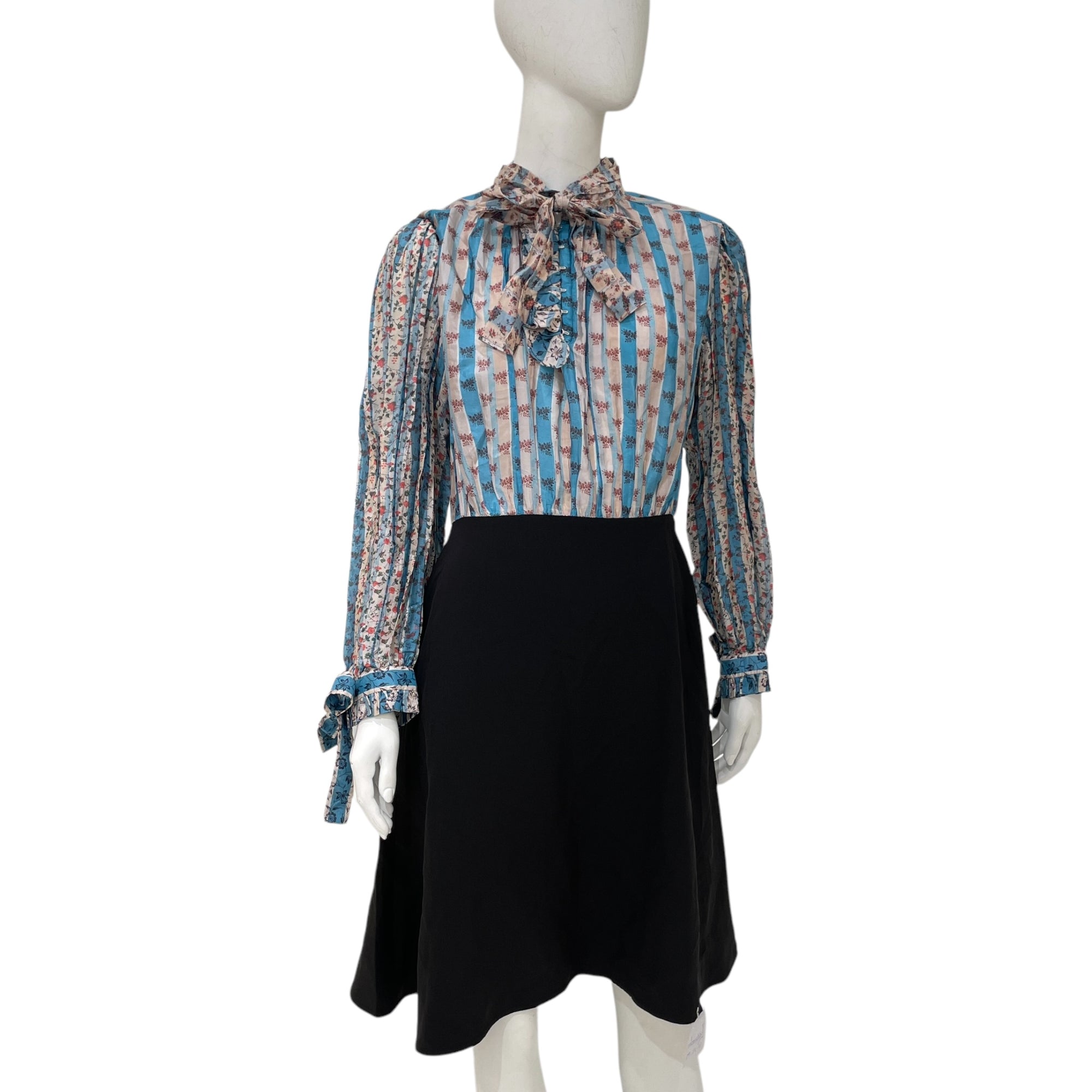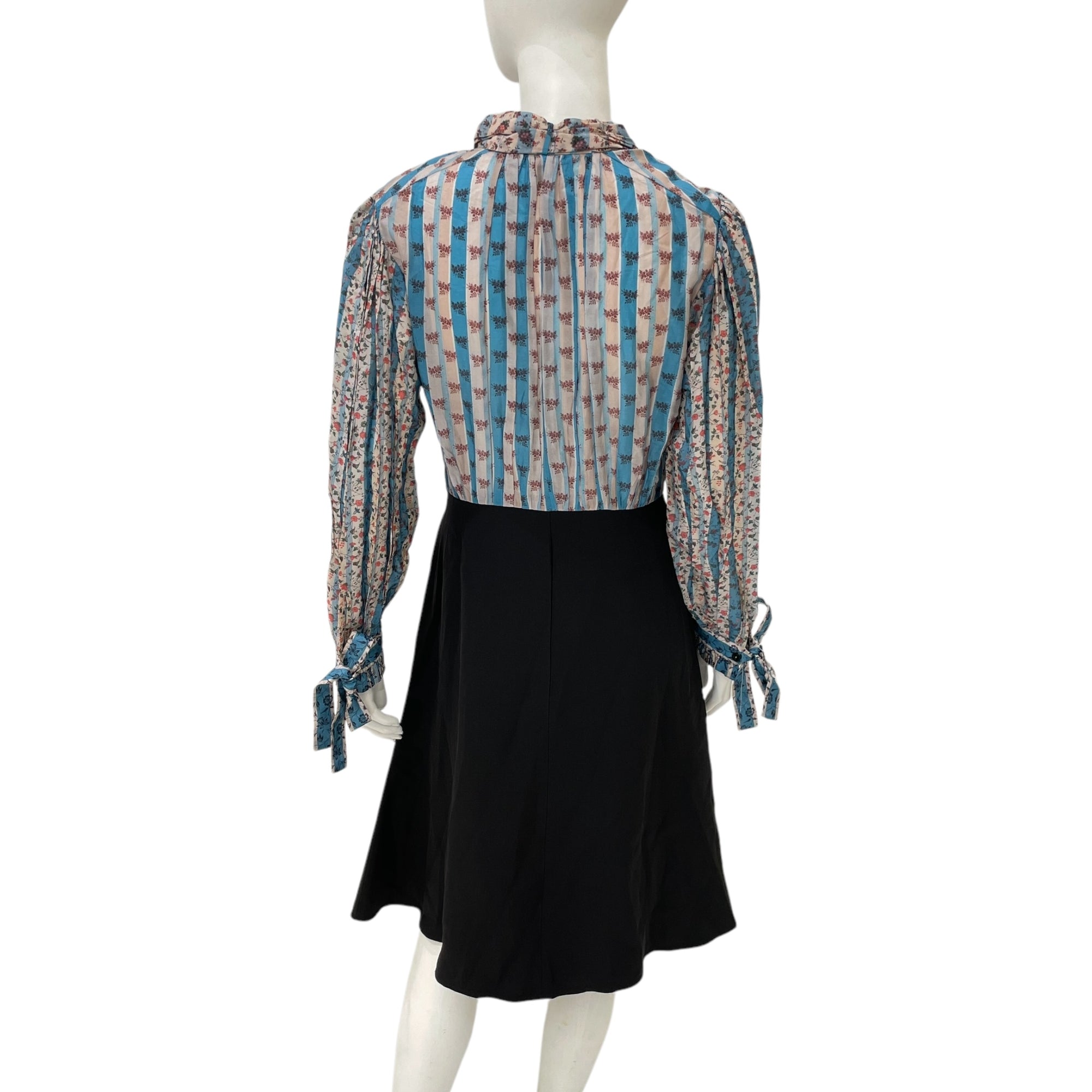 Visconti 38 Blue/Black Long Sleeve Dress in Silk